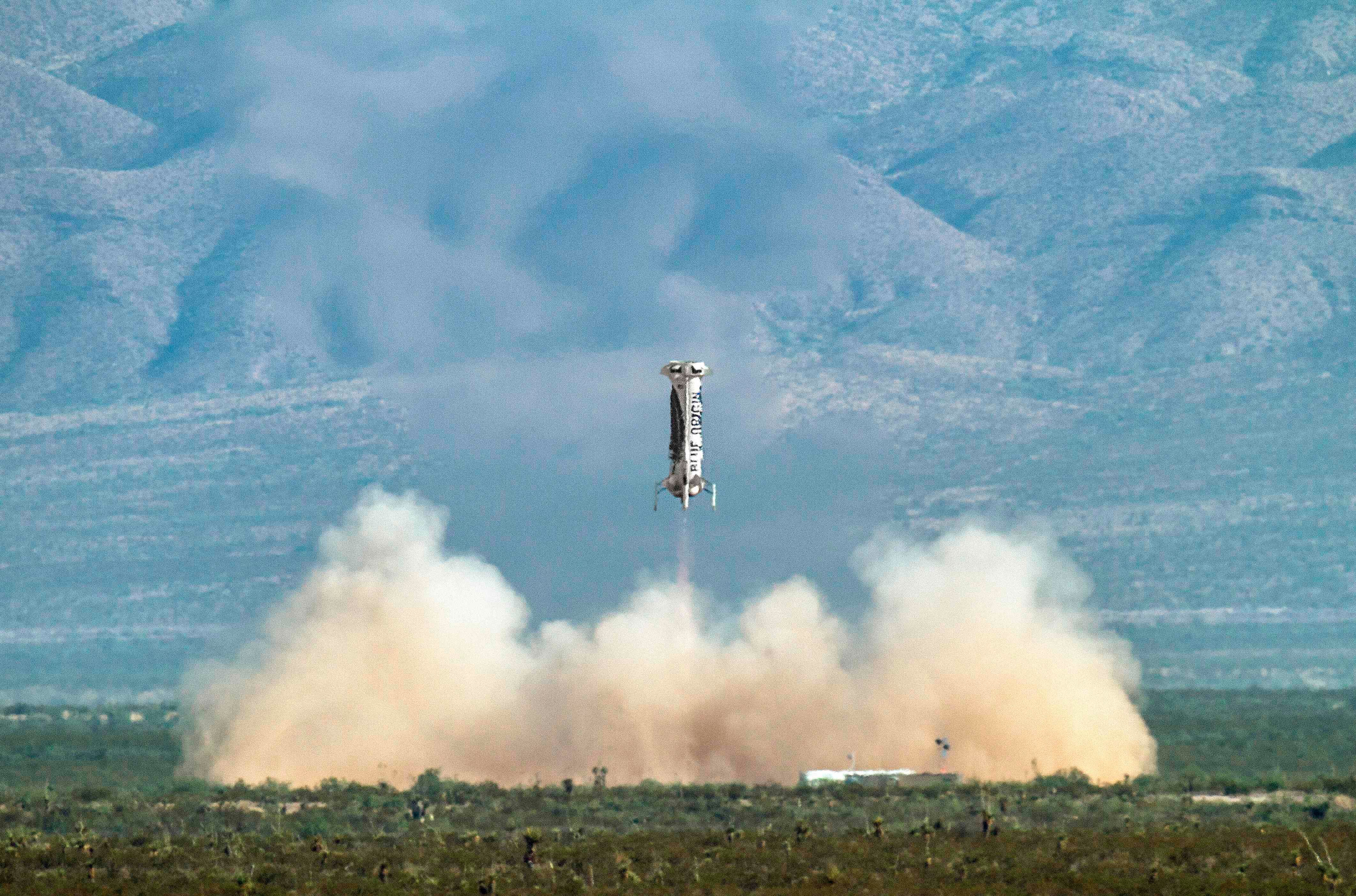 En Blue Origin, un cohete es lanzado verticalmente, y la cápsula en la que se encuentran los pasajeros se desprende en vuelo hasta alcanzar los 100 km de altura, antes de volver a caer a la Tierra con tres paracaídas.