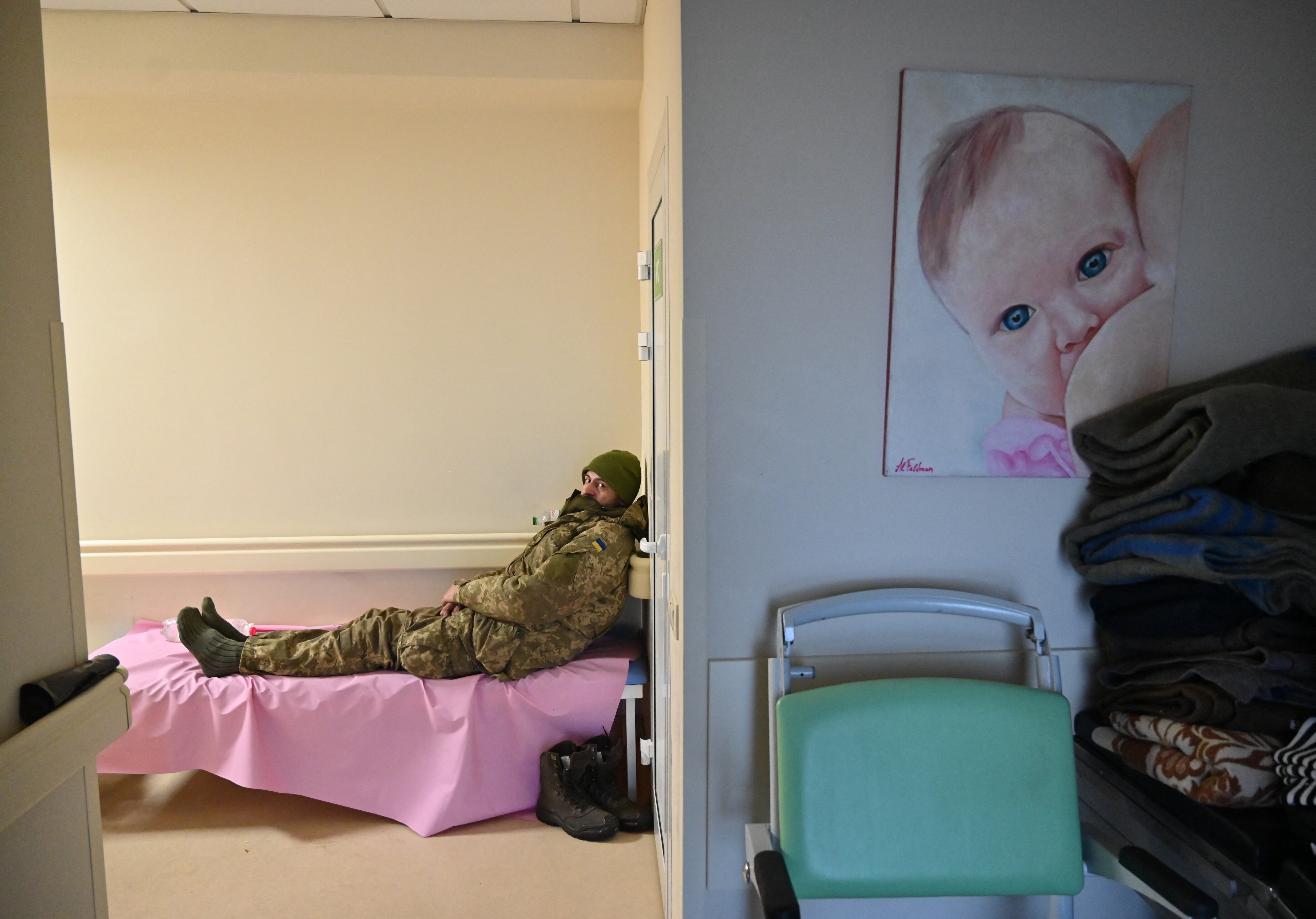 Al día siguiente, después de una noche en un búnker, esta mujer fue evacuada, al igual que otras madres y bebés, y la clínica se transformó en un espacio dedicado a primeros auxilios para atender a soldados y civiles heridos.