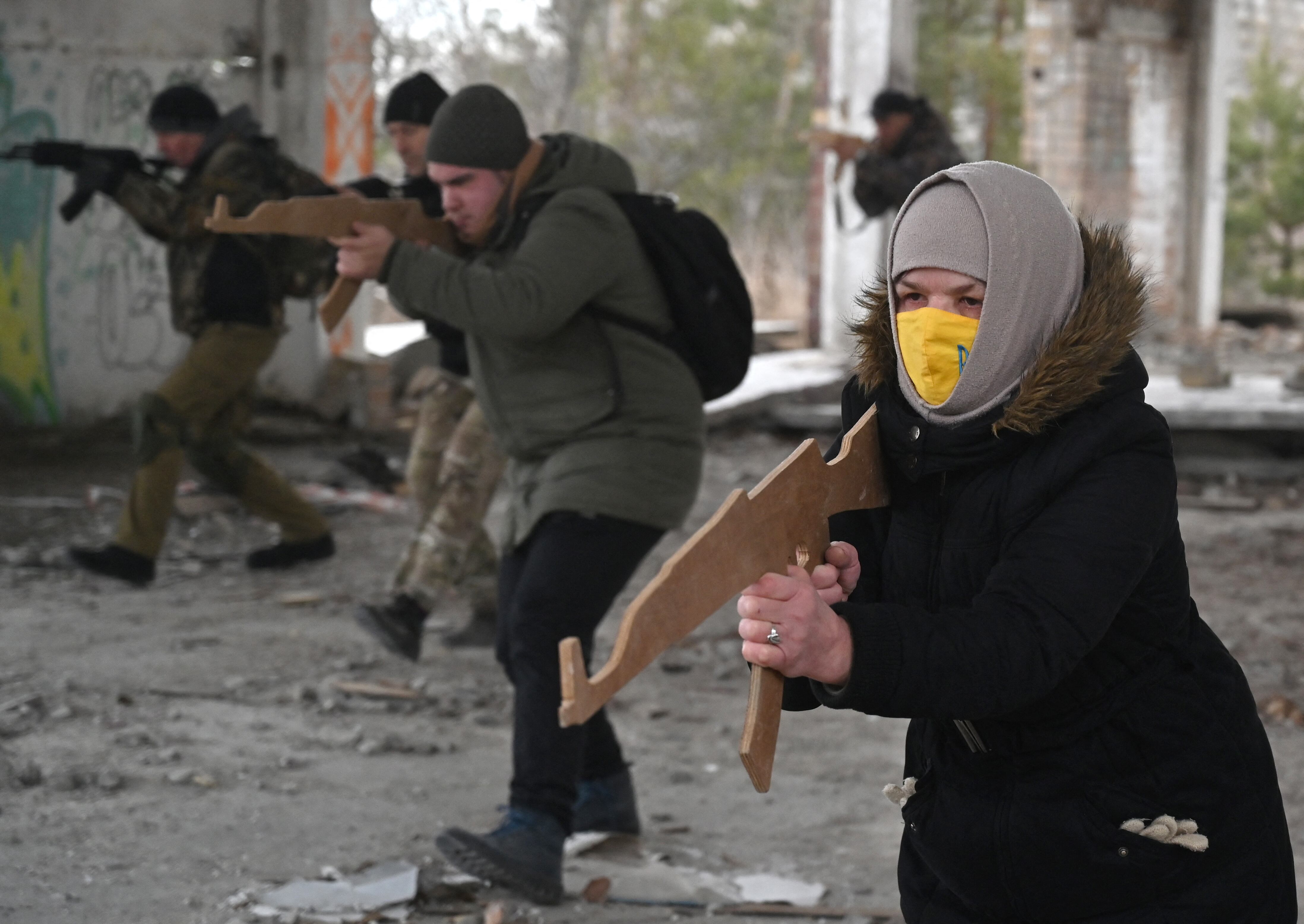 Yuri Gibalyuk, de 50 años y veterinario, se unió a los combates con su hermano y asegura que Ucrania tiene “muchos resistentes” para rechazar a los soldados de Vladimir Putin. “Si es necesario que mate cien, lo haré”, dice este voluntario de larga barba gris, luciendo su kalashnikov.
