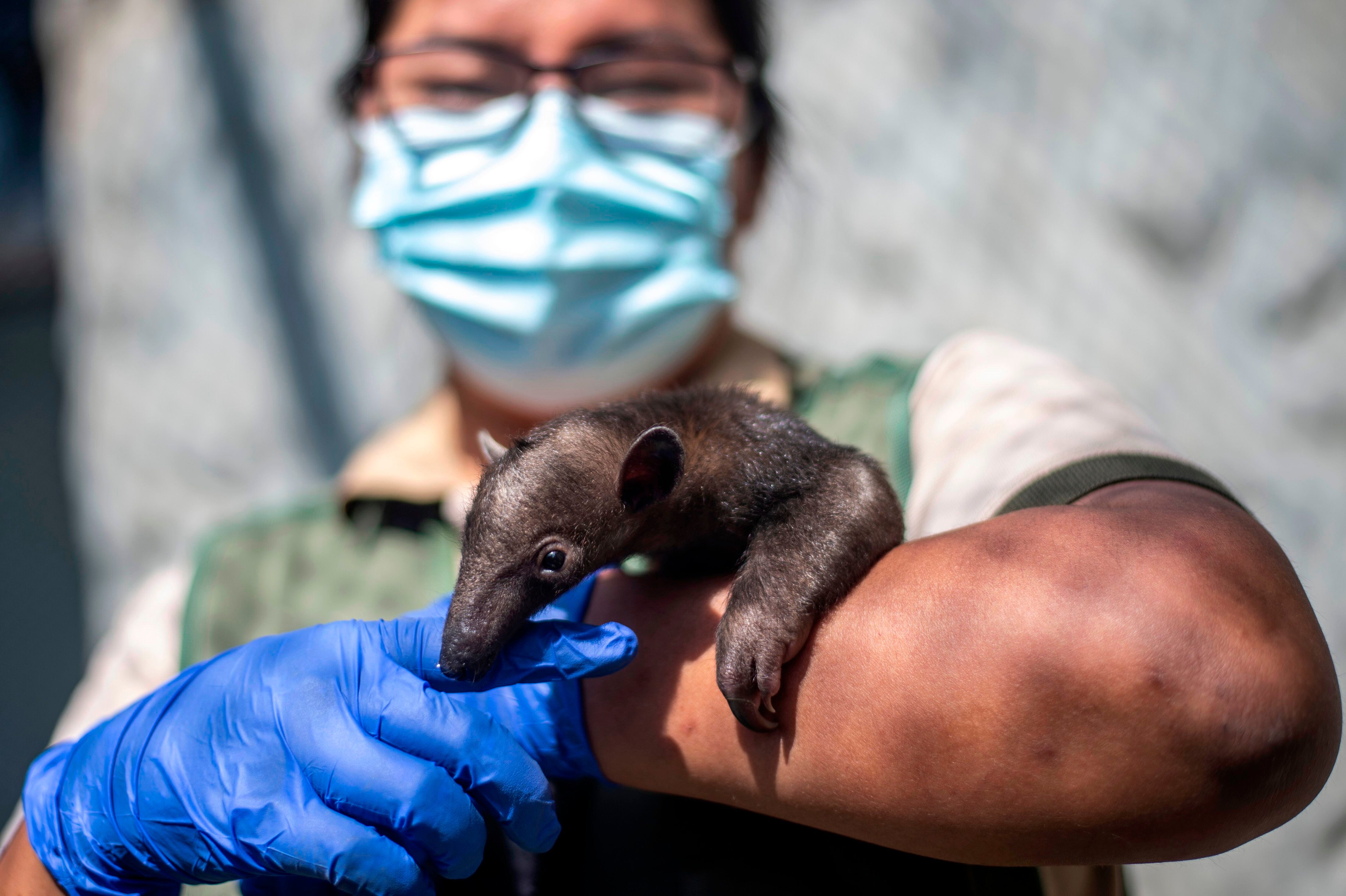 Un oso hormiguero nacido en cautiverio fue elegido como emblema de una campaña de donaciones de un zoológico de Lima, Perú, donde los animales sufren una crisis alimentaria por el confinamiento que vive ese país a causa de la pandemia del coronavirus.