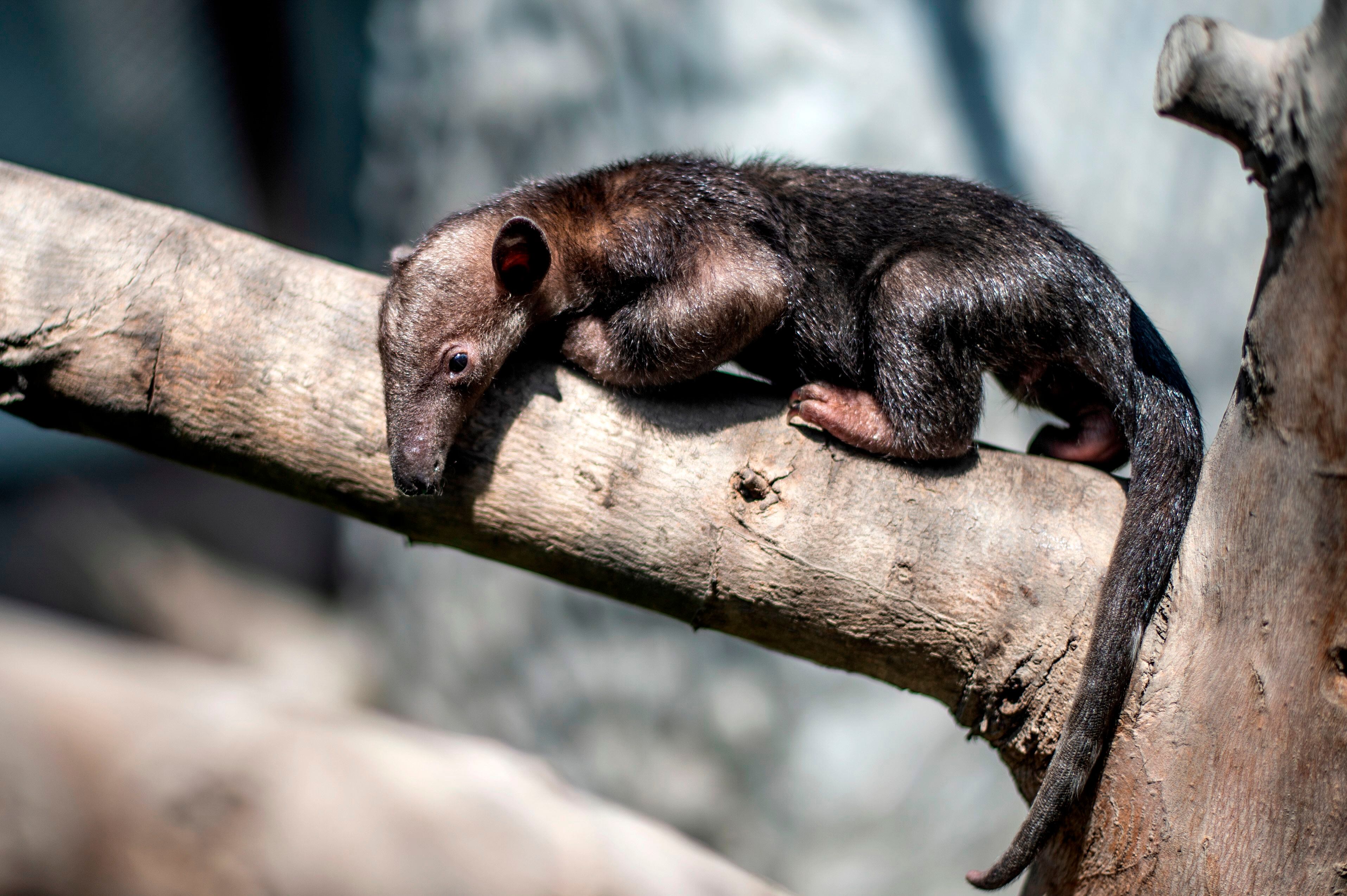 El pequeño oso hormiguero nació con un peso de 350 gramos el 29 de marzo, y gracias al cuidado de los veterinarios se encuentra en buen estado de salud, agregó Tello.