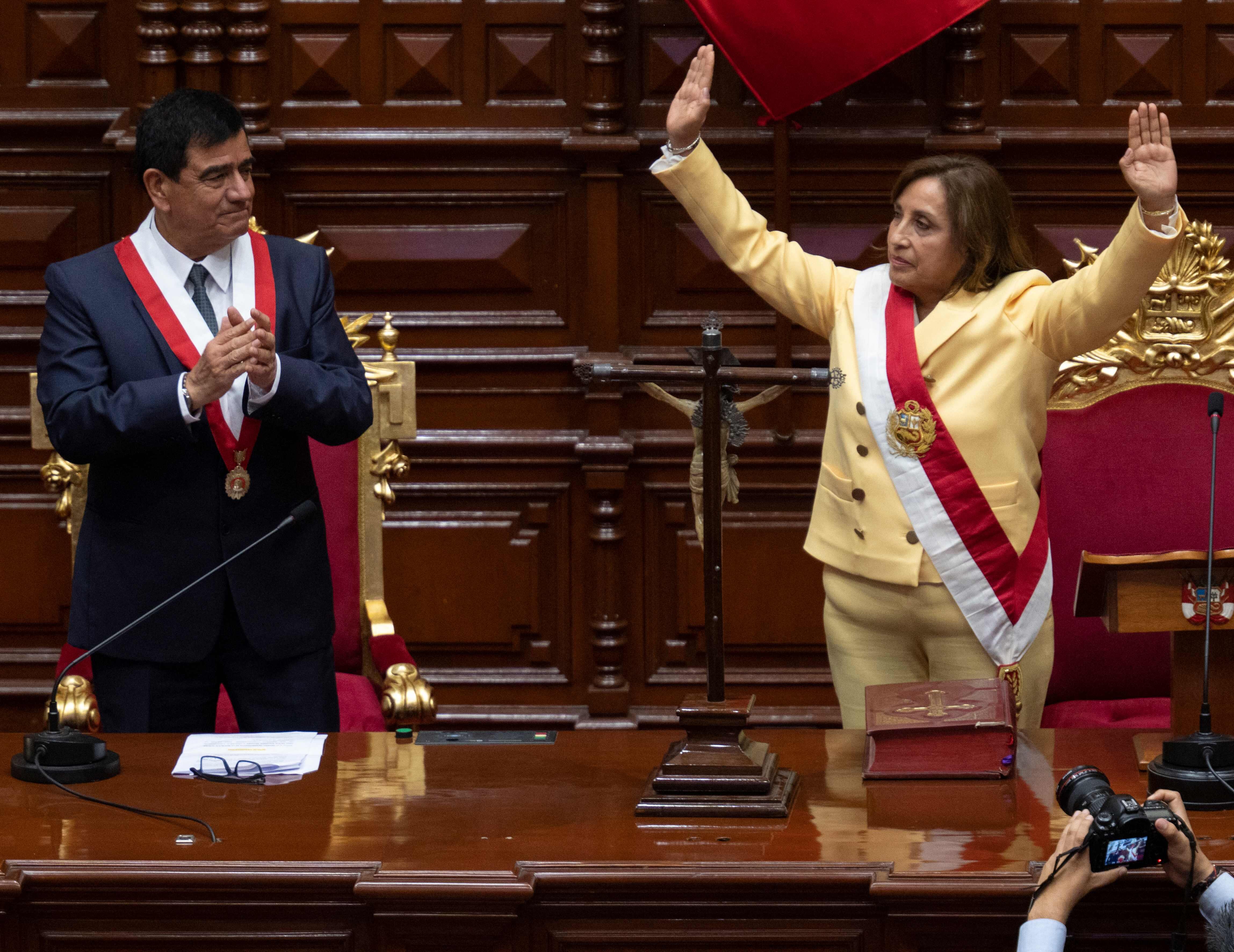 “Asumo de acuerdo con la Constitución de Perú, desde este momento hasta el 26 de julio de 2026″, cuando estaba previsto el fin del mandato de Castillo, dijo Boluarte ante el Congreso. La hoy mandataria es una abogada de 60 años que se convirtió en la primera mujer en dirigir Perú.