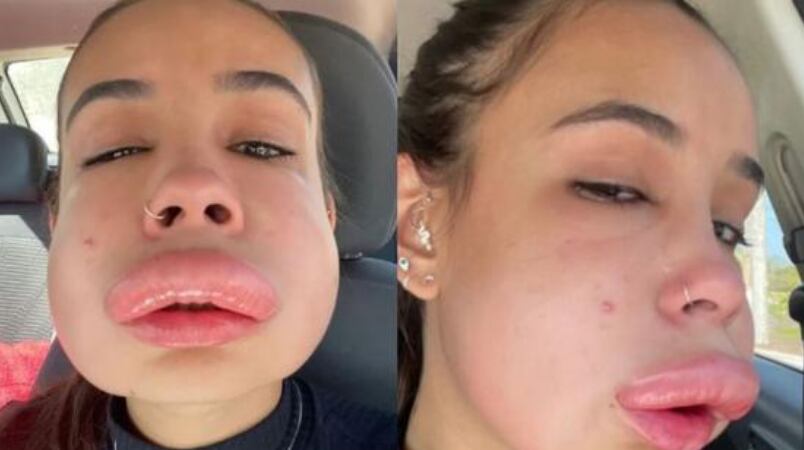 Mediante su cuenta en la red social TikTok relató a través de fotos, la evolución que tuvo luego de que la internaran y puso: “Hola, no hay que tenerle miedo a un procedimiento estético, solo tener cuidado con los productos utilizados, ya era la tercera vez que me había hecho rellenos de labios, pero, por un lado, que estaba torcido y quería corregir eso, tuve que usar este producto que me dio una alergia severa“.
