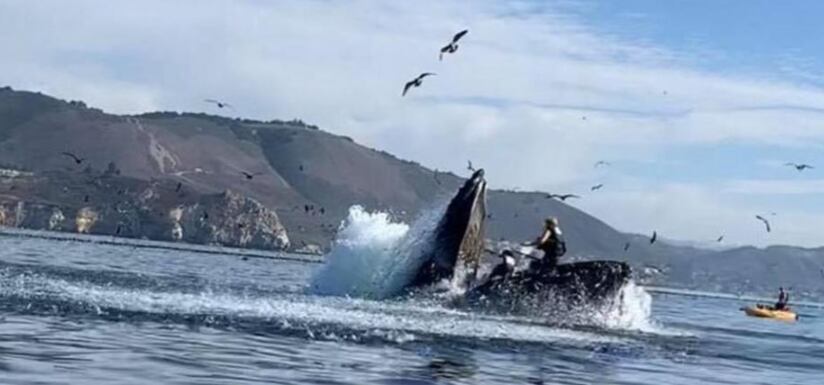 Un video en el que una ballena se hace tragadas a dos personas que hacían kayak le está dando la vuelta al mundo.