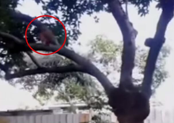 En el video se logra ver claramente como algo de unos 30 centímetros y con ropa color naranja sale corriendo entre las ramas de un árbol y desaparece como por arte de magia..