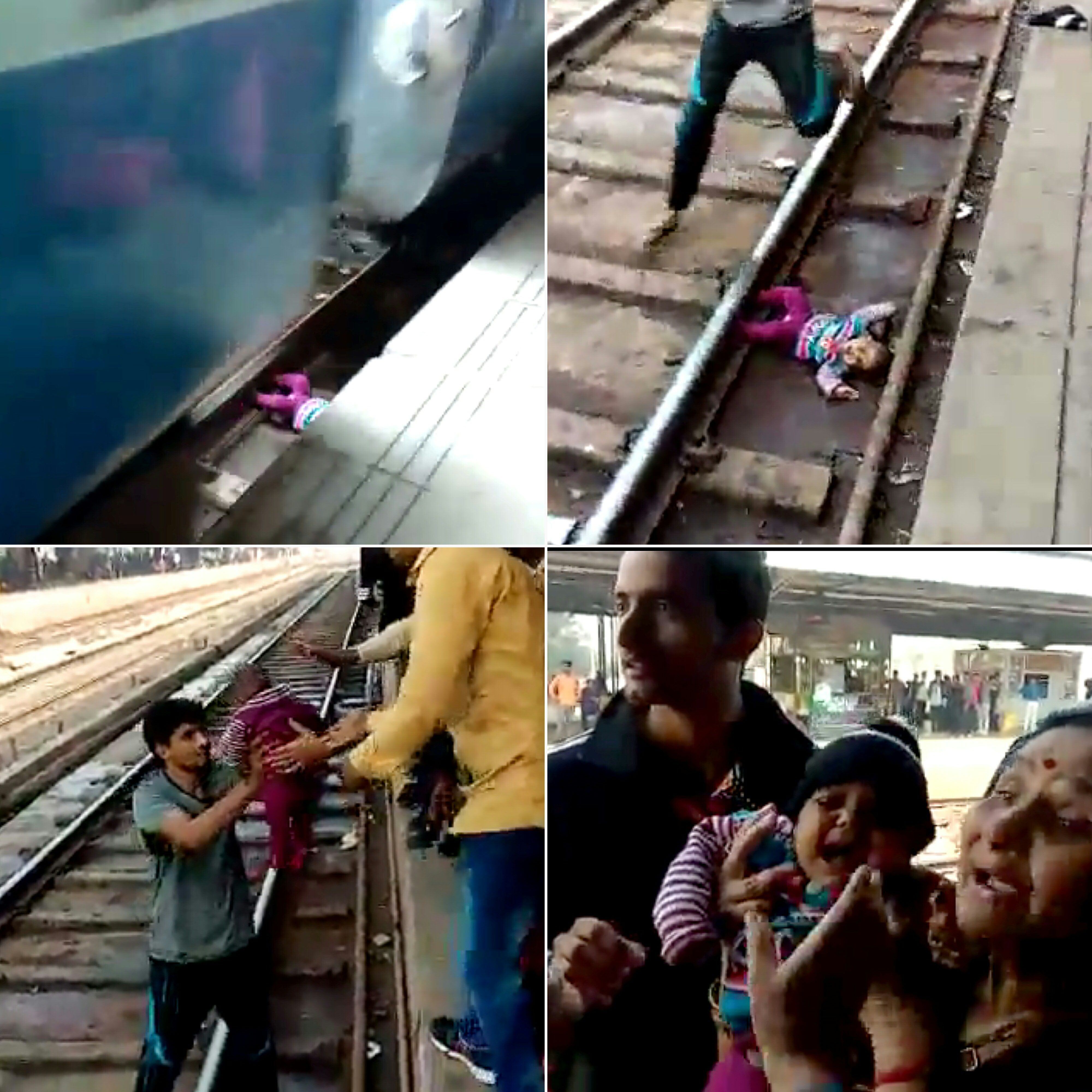 Una bebé cayó en las vías del tren en una estación de India, los vagones le pasaron por encima y, milagrosamente, no le pasó absolutamente nada.