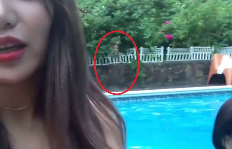 Fueron los seguidores de la intérprete los que notaron al fantasma entre los matorrales que están a la espalda de las jóvenes, mientras ellas conversan desde una piscina viendo directamente a la cámara, sin percatarse de la oscura presencia que se manifiesta detrás de ellas.