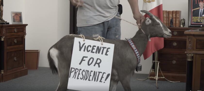 Lo más gracioso del video es una cabra que anuncia los puestos de tacos en cada esquina de EE. UU. o los mensajes impregnados en las gorras.