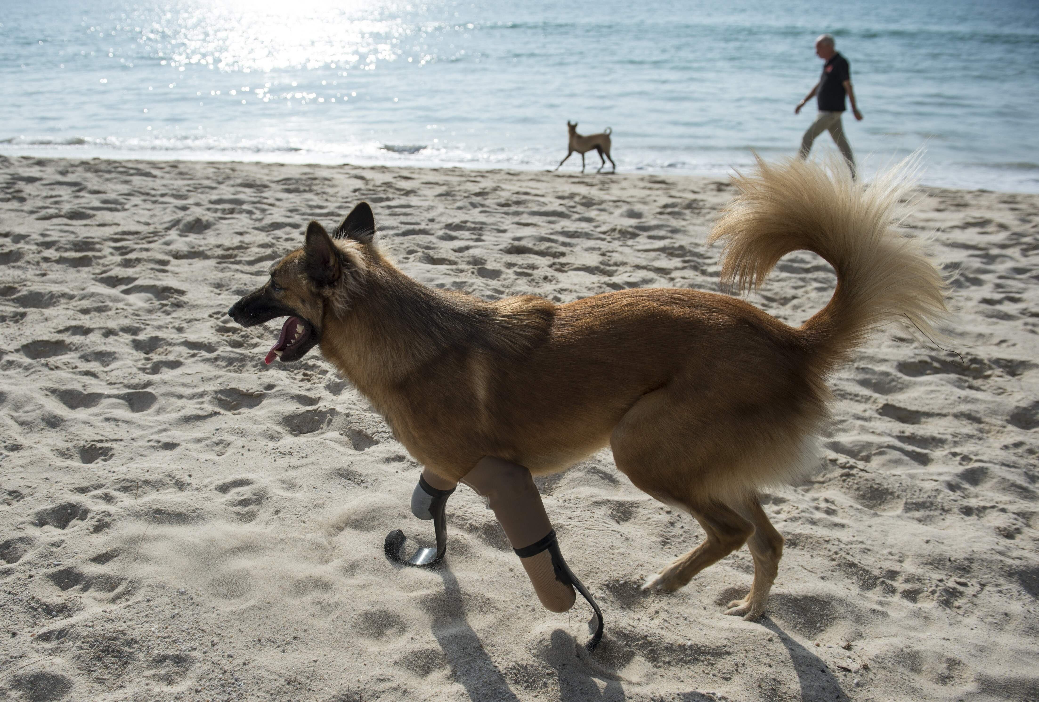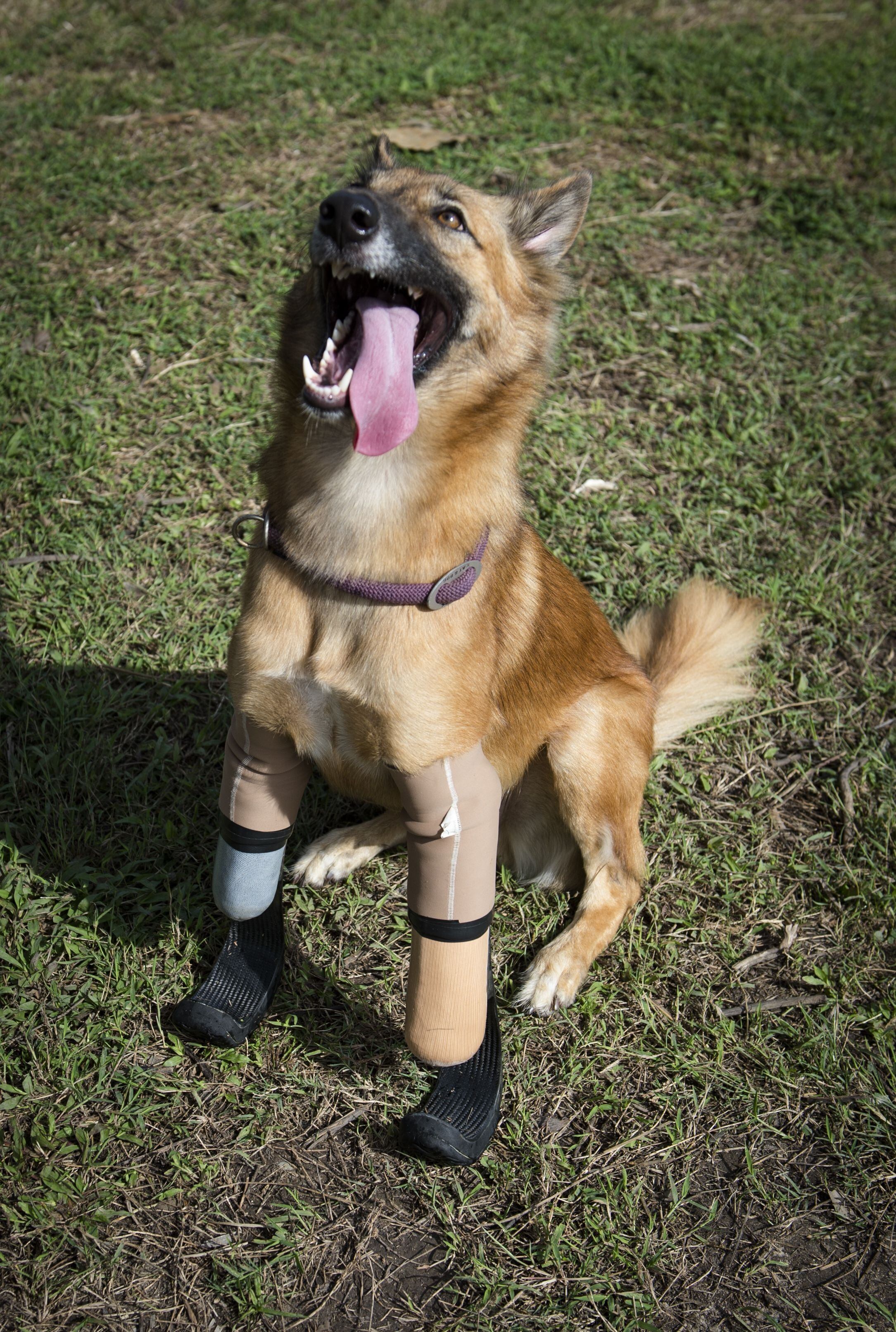 Estas prótesis livianas “le dan un mejor equilibrio” que un modelo anterior, más pesado, se alegra Dalley. “Es increíble como los perros se adaptan rápido”, dice entusiasmado el protector del zaguatico quien además de Cola tiene ocho perros más.