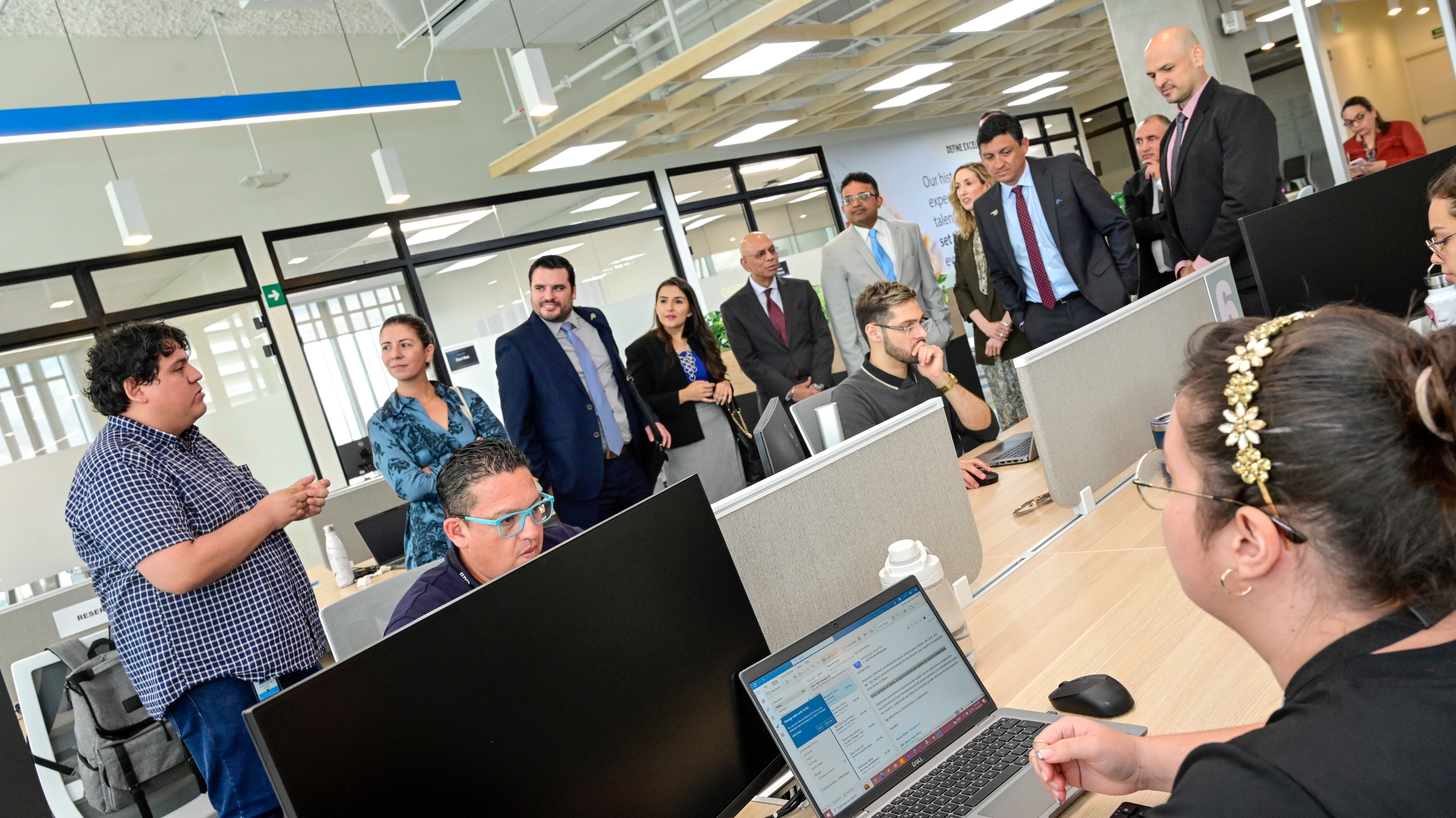 Las tecnologías de la sede incluyen ascensores inteligentes, puntos de acceso controlado y salas de conferencias de última generación para reuniones presenciales y remotas.