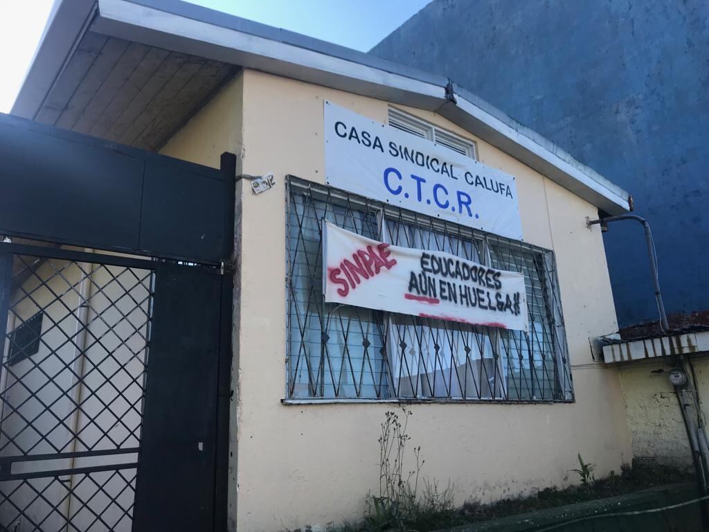 La Teja llegó a las instalaciones al sindicato este miércoles a las 8:15 a.m. ya que se nos indicó que los agremiados no se presentarían a laborar a los centros educativos, por lo que quisimos corroborar si se encontraban en la sede, ubicada 75 metros al norte de la iglesia Santa Teresita, en San José. No obstante, encontramos los portones cerrados y con candados.