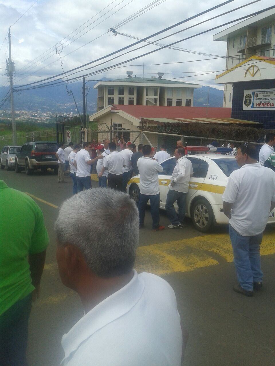 Cerca de 350 taxistas rojos se están manifestando en este momento en las afueras de la estación central de la Policía de Tránsito, en Heredia centro.