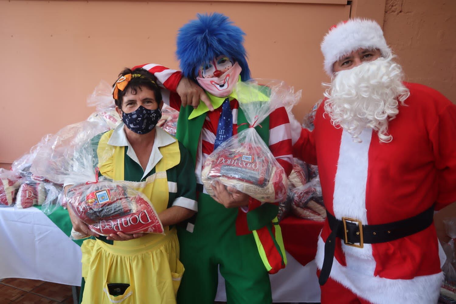 Para hacer más llamativa la entrega para lo niños, la pulseadora lo hizo acompañada de un Colacho, un payasito y los personajes de la mamá y la novia de El Galán, quienes son vecinas de La Lima y se apuntaron a colaborar.