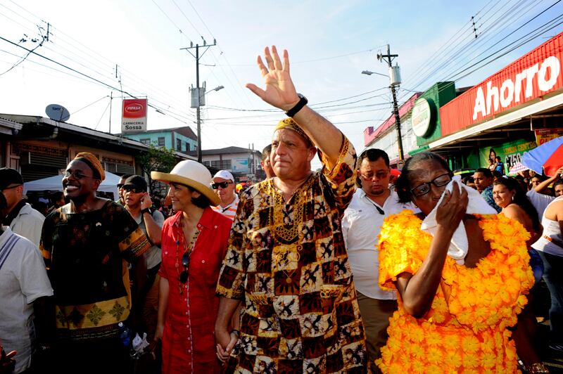 La presidenta de la Asamblea, con un traje más sobrio, sí vistió más acorde a la ocasión, en la cual los participantes afrodescendiente sacan sus mejores galas para lucir con orgullo sus raíces.