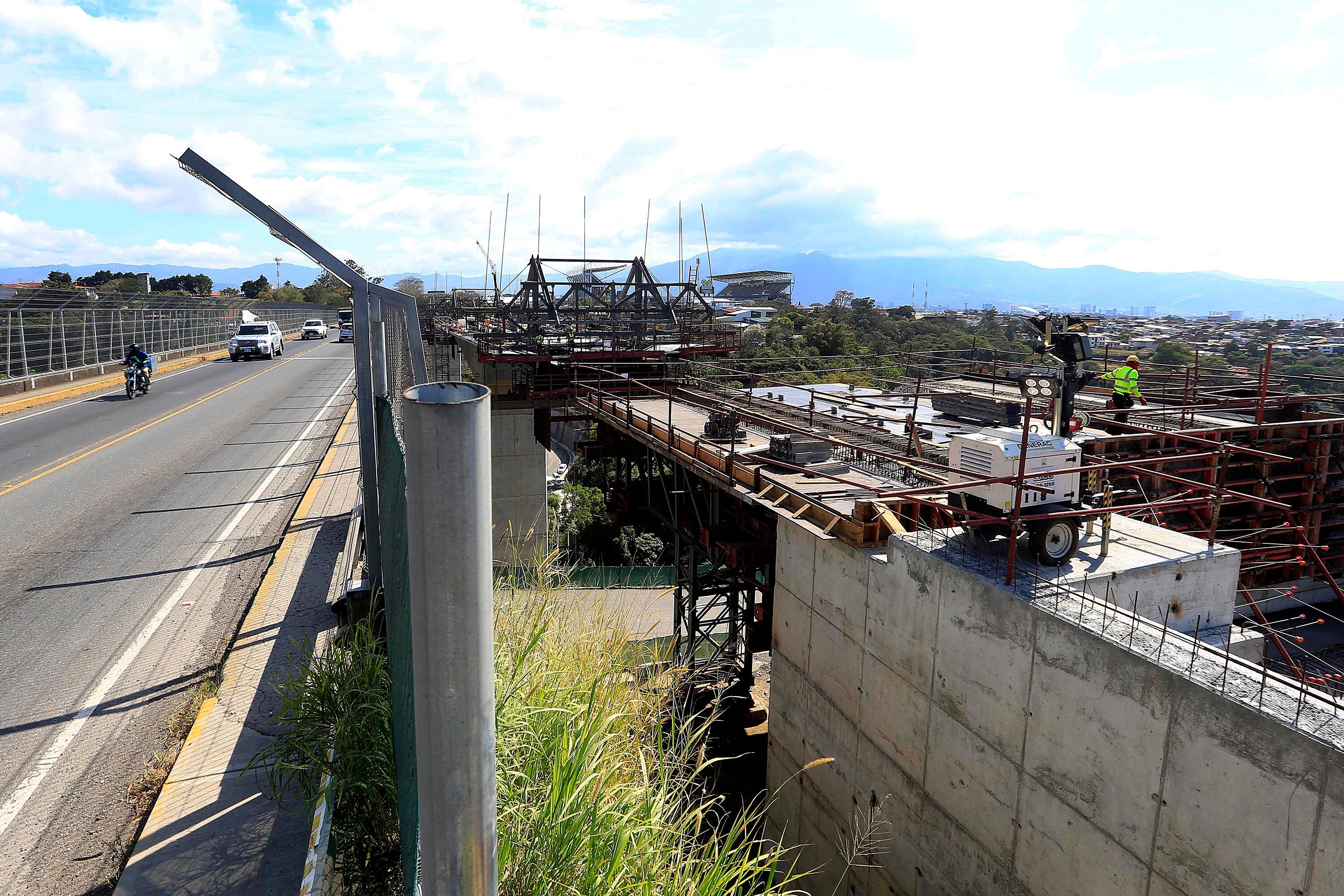 Las obras del puente gemelo del Saprissa, que se construye sobre la ruta 32 que conduce a Limón, van viento en popa, llevan más de la mitad del trabajo hecho y se estima que estará listo en setiembre.
