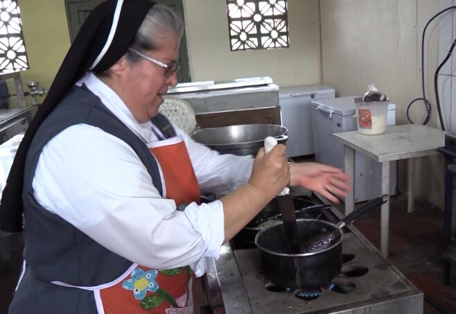 “Estamos cocinando unos frijolitos para nuestros hermanos que nos visitan, porque queremos atenderlos como nuestro Señor atendió a todos aquellos con quienes se encontró y amó”, dijo la hermana y misionera Clarisa, Ana María García, mientras le ponía duro a la cocinada.