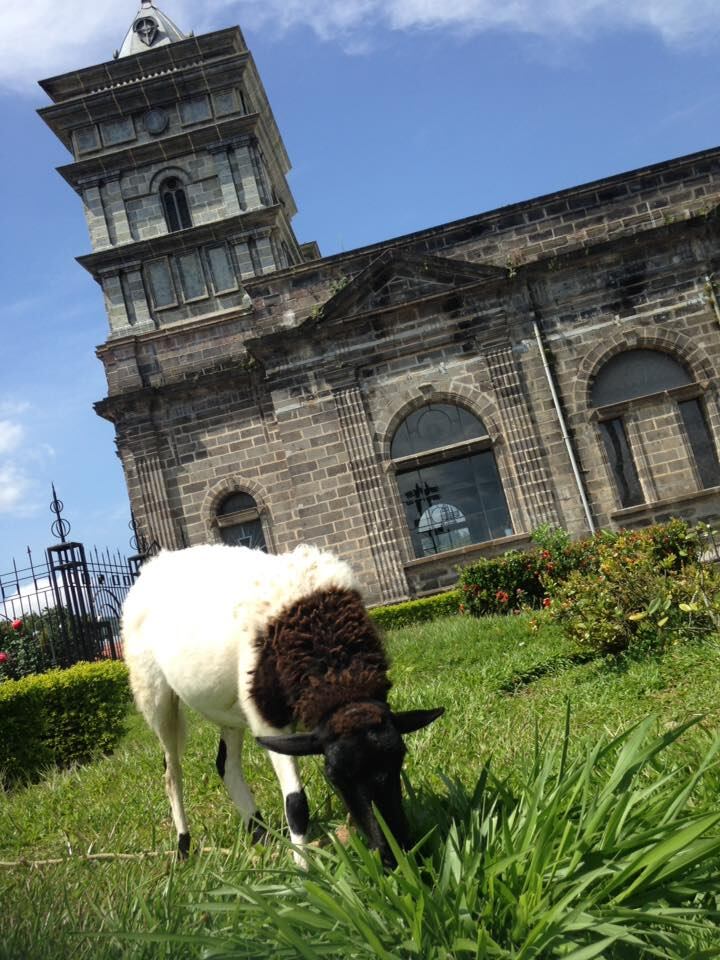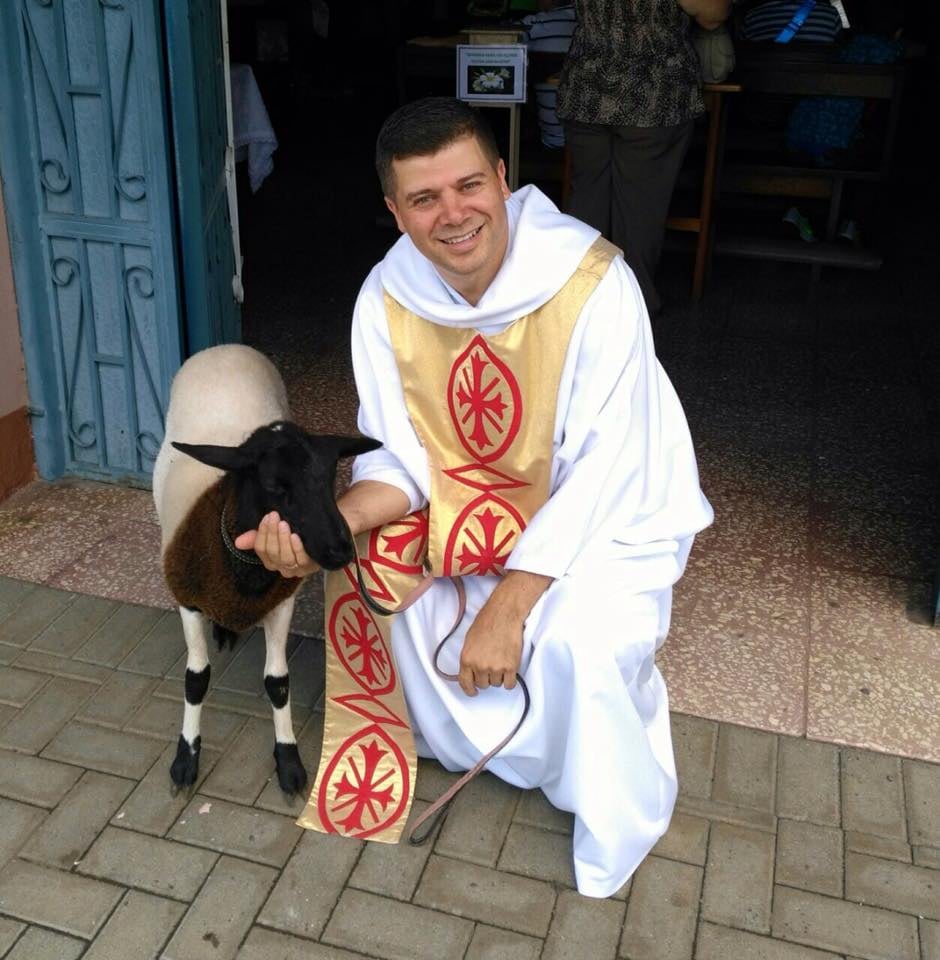 El padre José Daniel Vargas, de la iglesia de Palmares, nunca había tenido una mascota, pero desde hace seis meses tiene una muy particular: una ovejita.