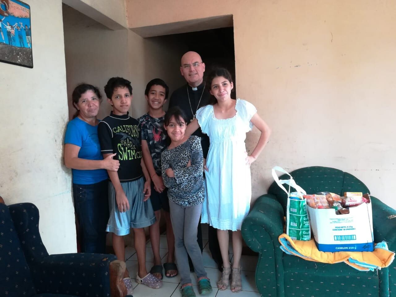 En el caso de monseñor, él visitó a la familia Solís Pleitez, junto con el padre Geison Ortiz, en la urbanización La Abundancia. Este grupo tiene siete miembros, aunque a la hora del almuerzo solo había cinco.