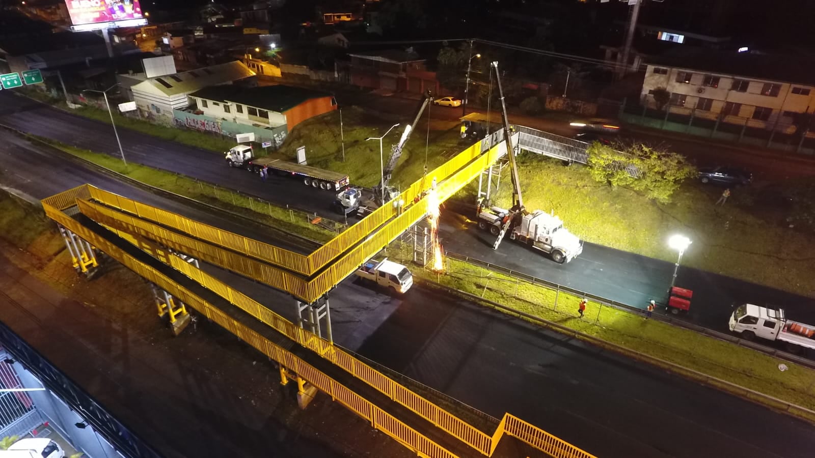 El 14 de mayo, el puente peatonal se vino al suelo cuando una grúa se lo pasó llevando. La estructura está a 400 metros de la rotonda de San Sebastián, en San José.