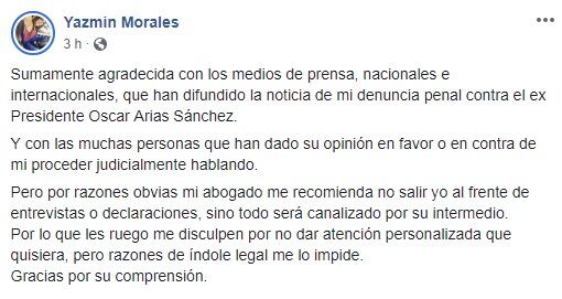 El abogado Arcelio Hernández, quien representa a la exmiss Costa Rica Yazmín Morales en su caso en contra del expresidente Óscar Arias, denunció haber recibido presiones políticas un día después de haber aceptado el caso.