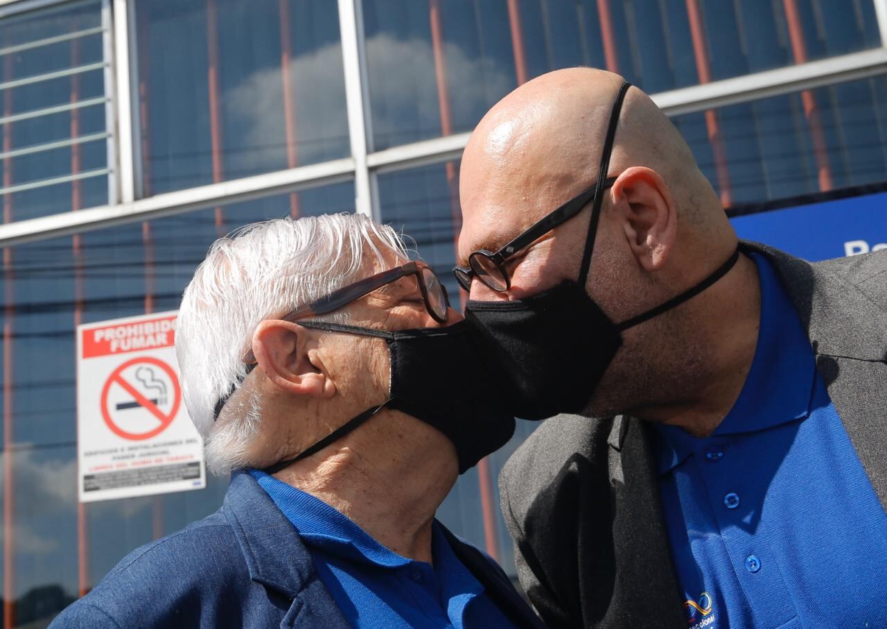 Dentro del lugar ambos se dieron el beso de rigor cuando lo anunció la jueza Maureen Solís, pero luego tuvieron que ponerse mascarillas como medida de protección.