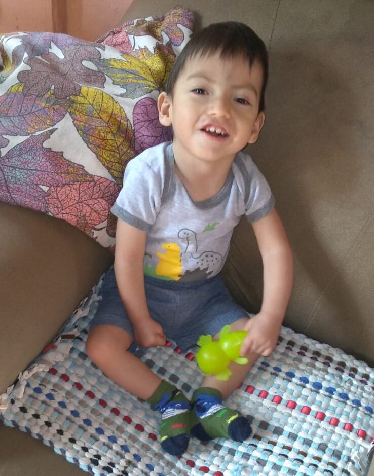 Santhi nació pesando solo 900 gramos y sus primeros seis meses de vida los pasó internado. Él no tiene malformaciones en su cuerpito, pero el daño cerebral es grande debido a las secuelas de la quimioterapia que le ponían a la mamá mientras él estaba en su vientre.
