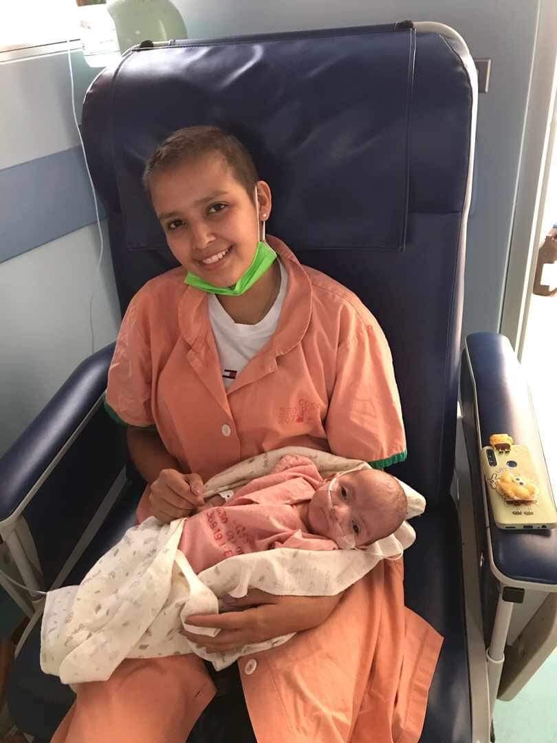 Los médicos pensaban que tendría un aborto espontáneo con la primera quimioterapia, pero no fue así, las oraciones que ella y su familia hicieron a Dios ayudaron a que el embarazo llegara a los cinco meses y tres semanas.