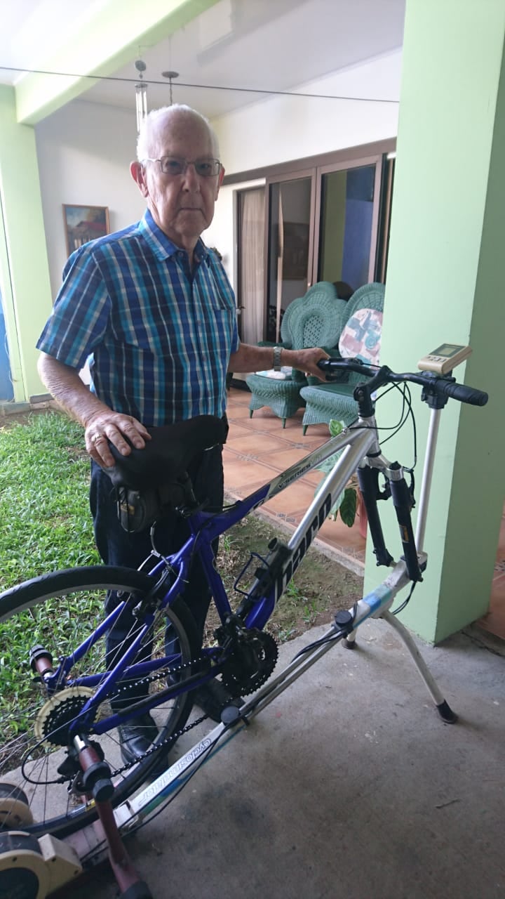 Es tan activo que hace bicicleta estacionaria tres veces a la semana, media hora cada día.