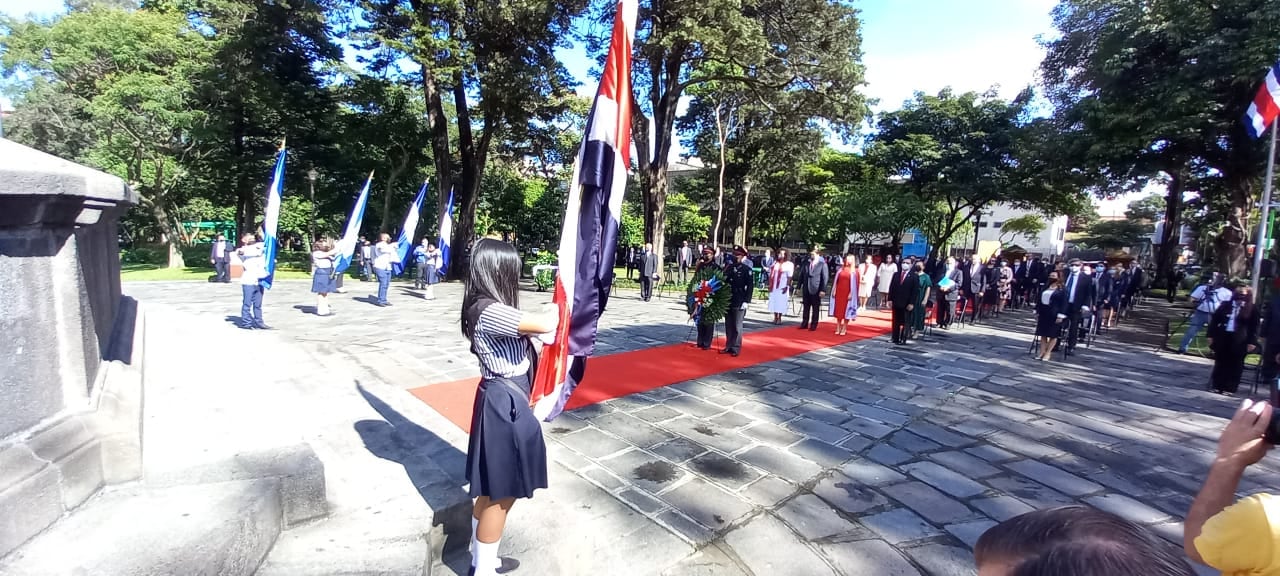 El presidente del país, Carlos Alvarado, los presidentes de los Supremos Poderes, ministros, el alcalde de San José y embajadores centroamericanos, estuvieron en la actividad que estuvo acompañada por la banda municipal de San José y que dio inicio a las 8 a. m.
