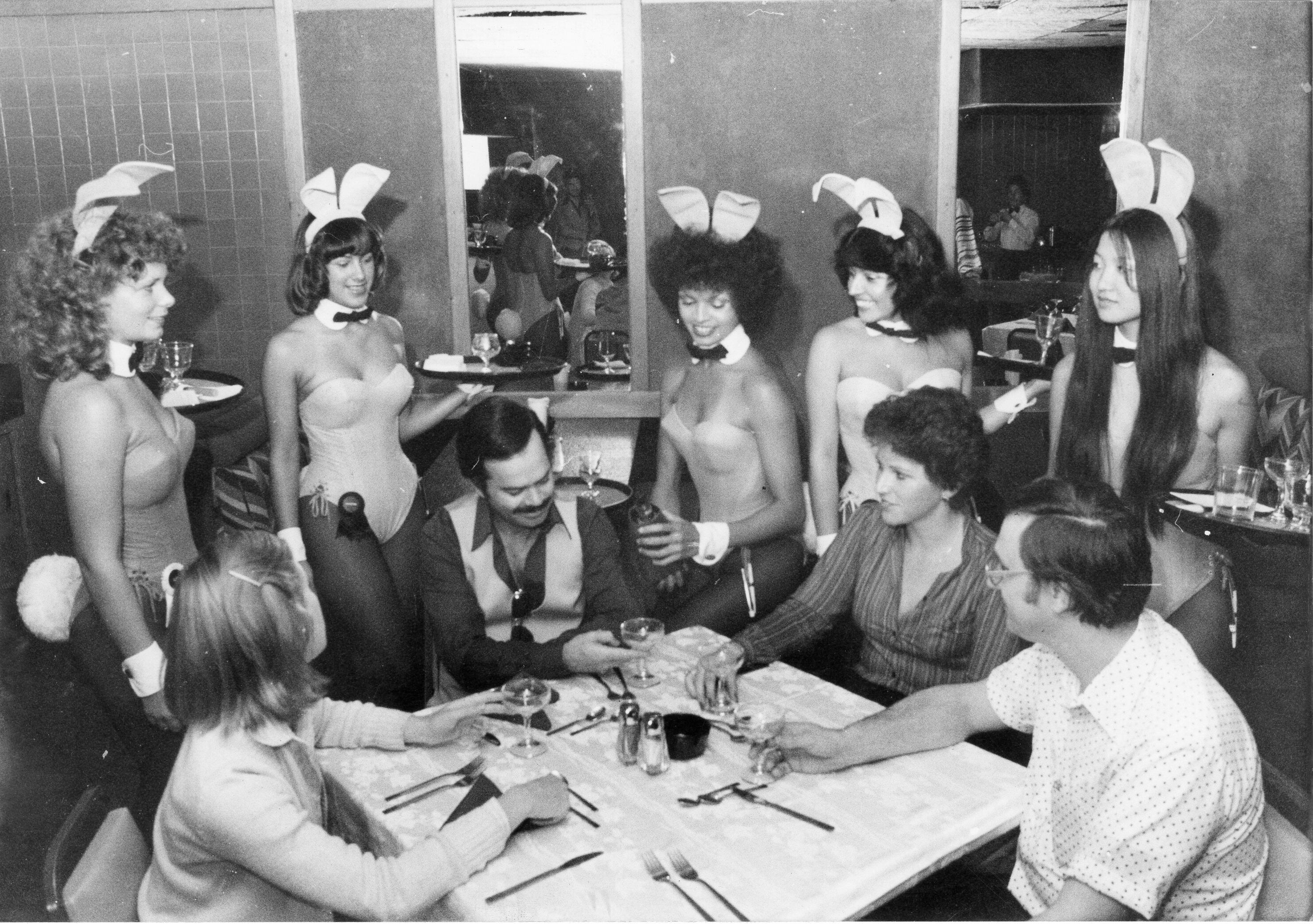 Todas las conejitas eran bien guapas, usaban el tradicional traje con orejas y colita y tenían prohibido salir con los clientes.
