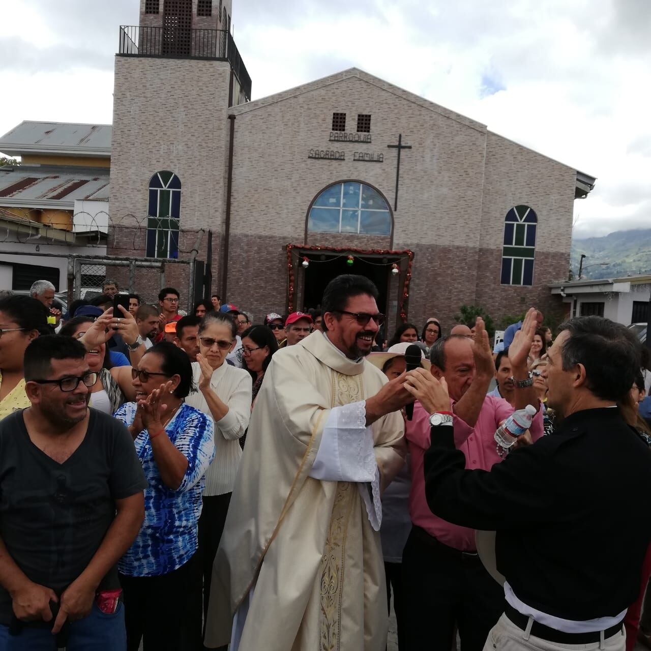 La segunda parada fue en la parroquia de la Sagrada Familia, en el barrio Sagrada Familia. Ahí el sacerdote Fabio Loáiciga llenó de bendiciones a los caminantes.