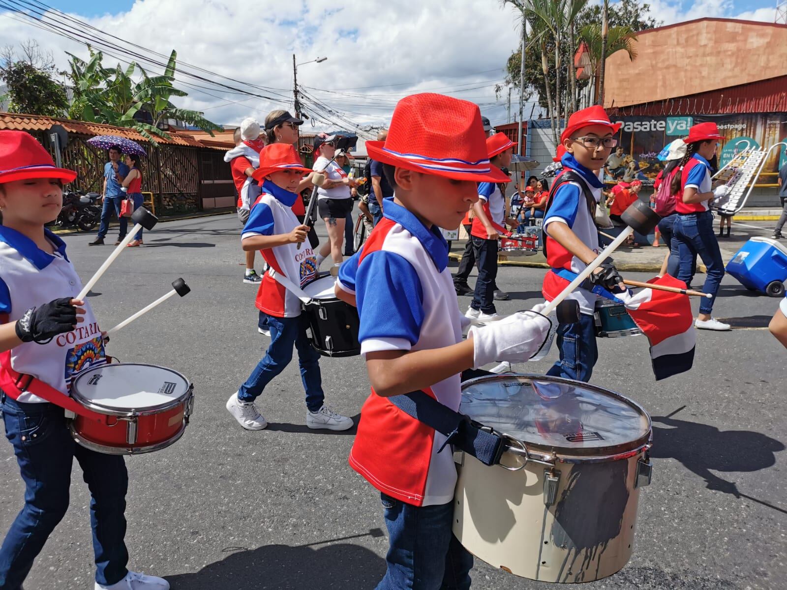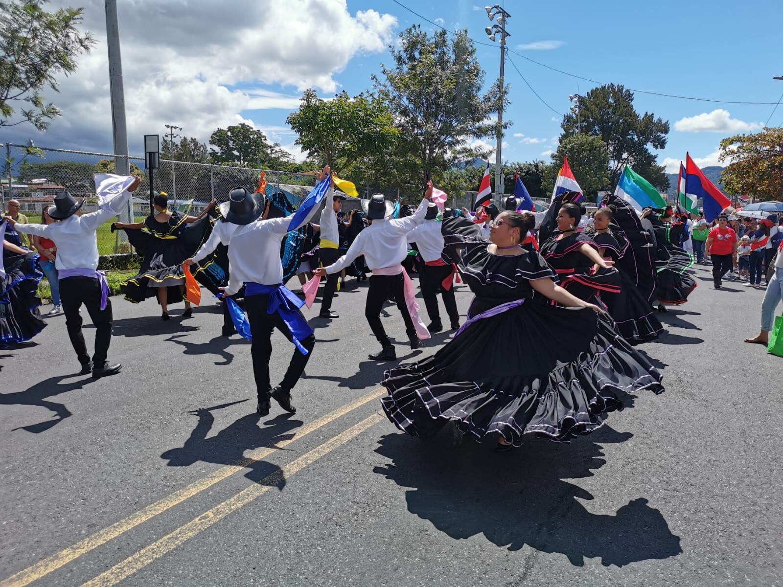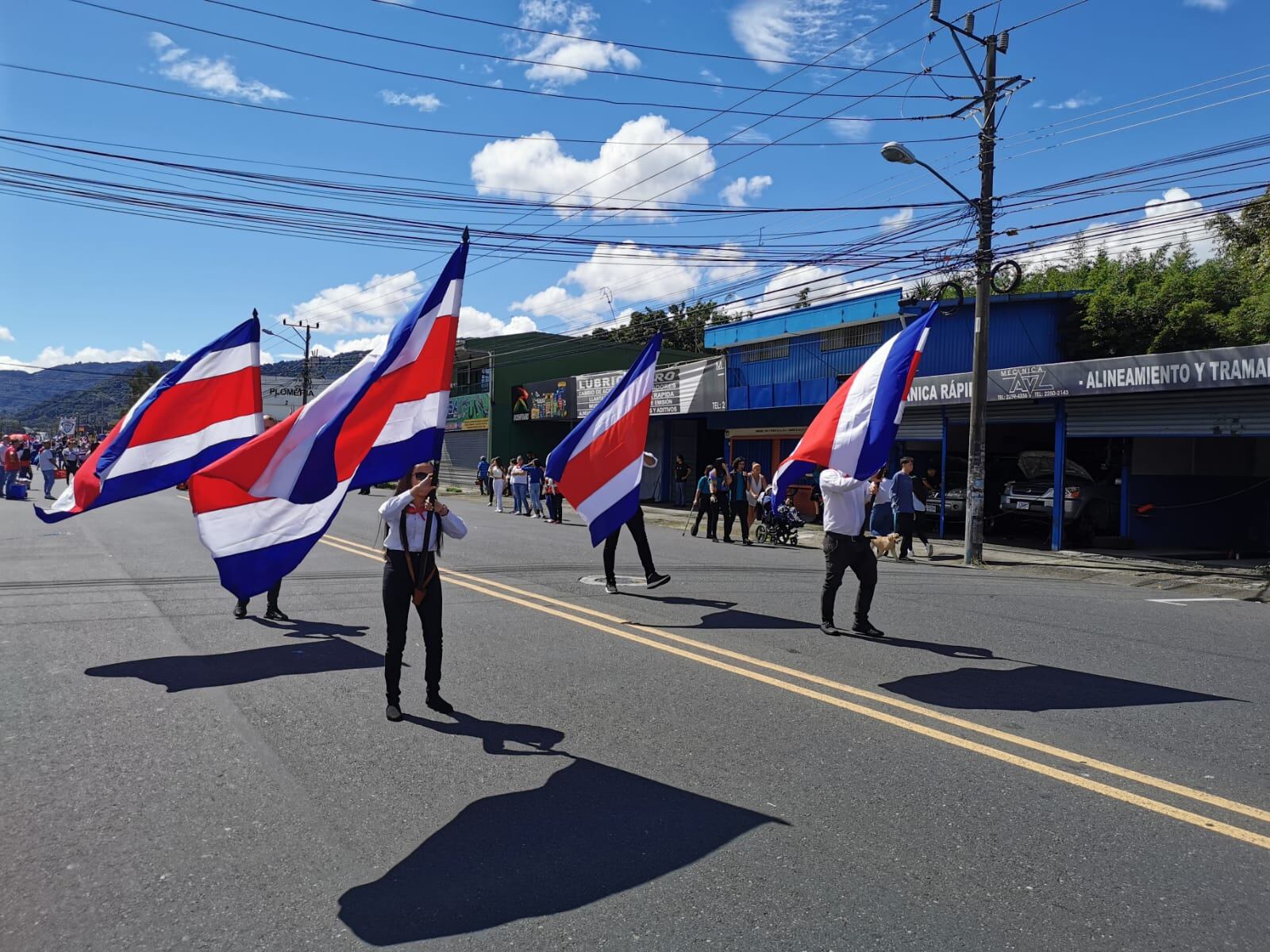 El colorido y sonoro desfile salió a las 8:30 de la mañana de la calle ancha en Gravilias de Desamparados y llegó hasta el parque central de ese cantón.