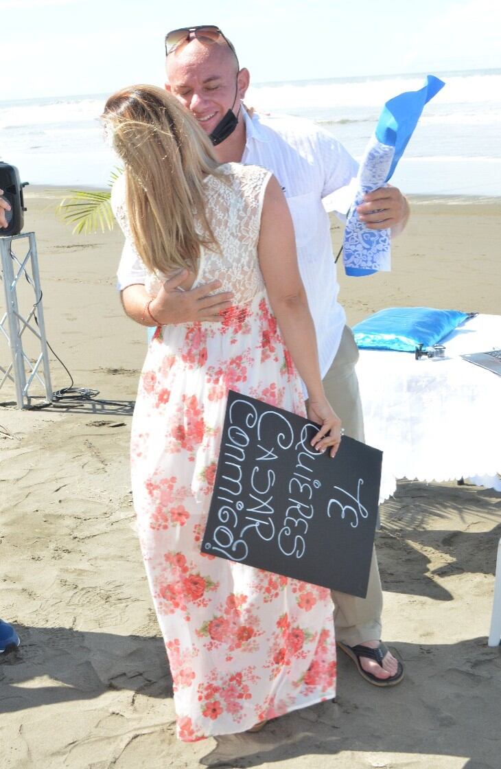 Al novio hasta le habían dado indicaciones de cómo tenía que estar vestido y ayudó a decorar el lugar. En una hora Pamela se tuvo que alistar y preparar a sus dos pequeñas para alcanzar a su amor en la playa.