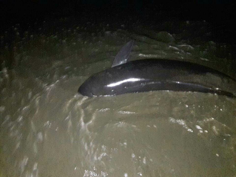 Según informes, el cetáceo medía 1,6 metros de longitud y, pese las circunstancias en las que se encontraba, entre rocas y arena, no sufrió lesiones de gravedad.