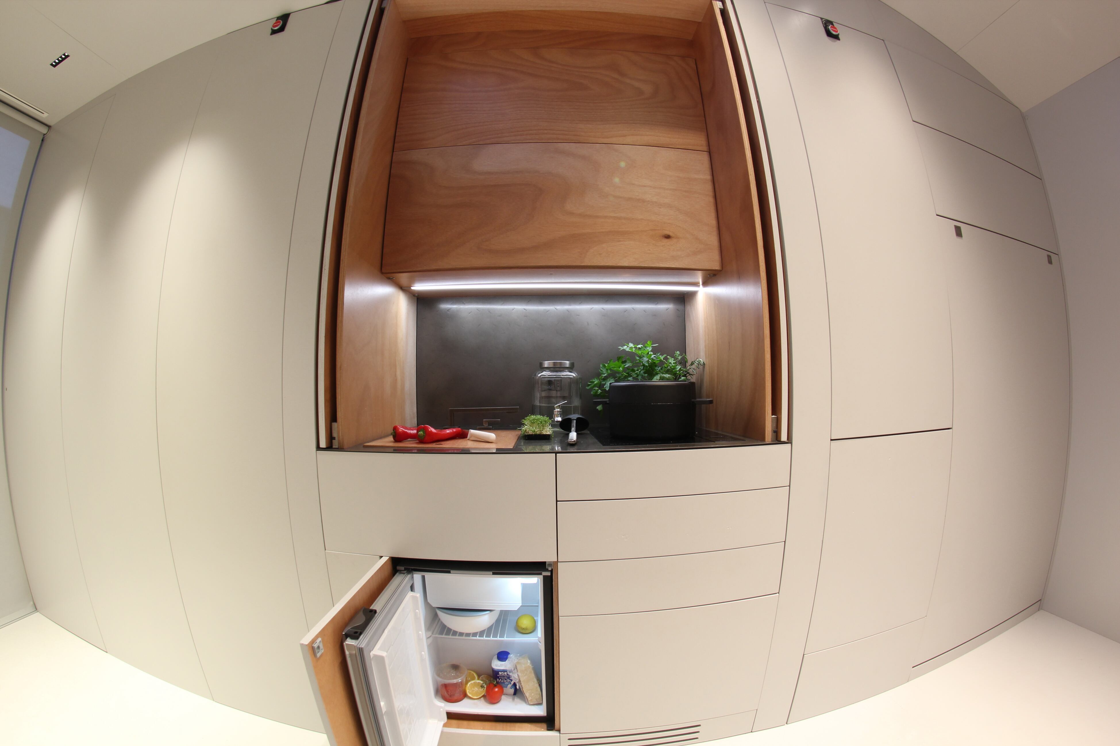 “Con unos pocos movimientos, el dormitorio se convierte en una sala de estar, el baño en un estudio confortable y la cocina en trinchante. Cuando se cierran todos los muebles, la casa se vuelve nuevamente un espacio abierto, donde se pueden organizar fiestas con amigos, hacer yoga, o simplemente disfrutar del vacío interior para efectuar una meditación”, dijo
