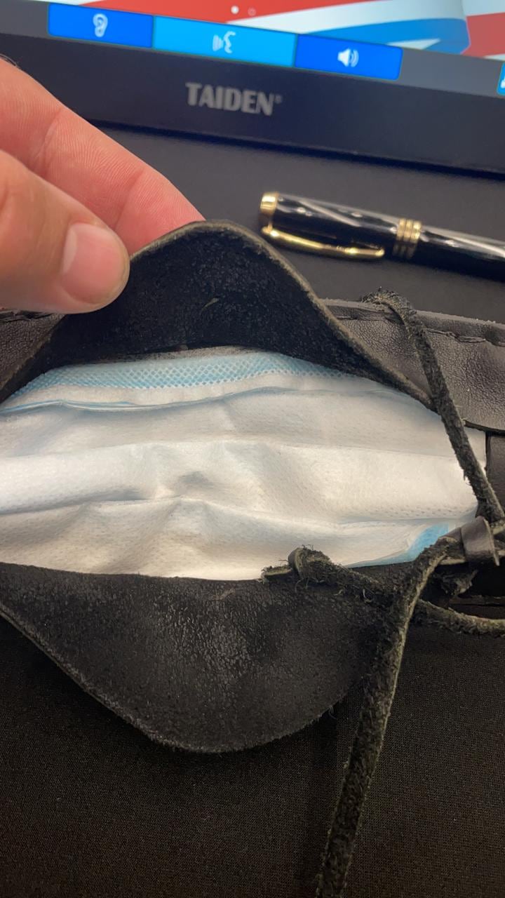 “Decidí usar cuero porque se adapta a la forma de la cara, lo curé, lo desinfecté y me hice una para mí, esa fue la primera. Le hice unos huequitos para que tuviera ventilación, es como un portamascarilla porque se le debe colocar por dentro un cubrebocas desechable o de tela”, añadió.