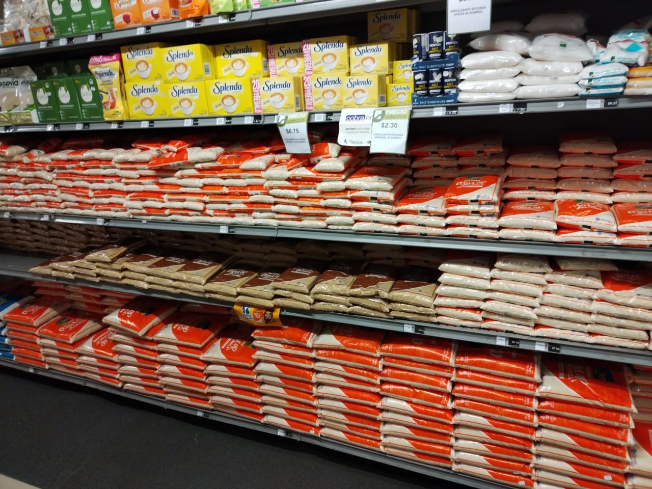 La bolsa de un kilo de azúcar corriente nos la encontramos a un dólar y la de dos kilos y medio, en $2.65, más o menos como un rojo y medio. Una botella de 750 mililitros de aceite de cocina regular estaba en $2, poco más de mil colones. Eso entre los productos de primera necesidad.