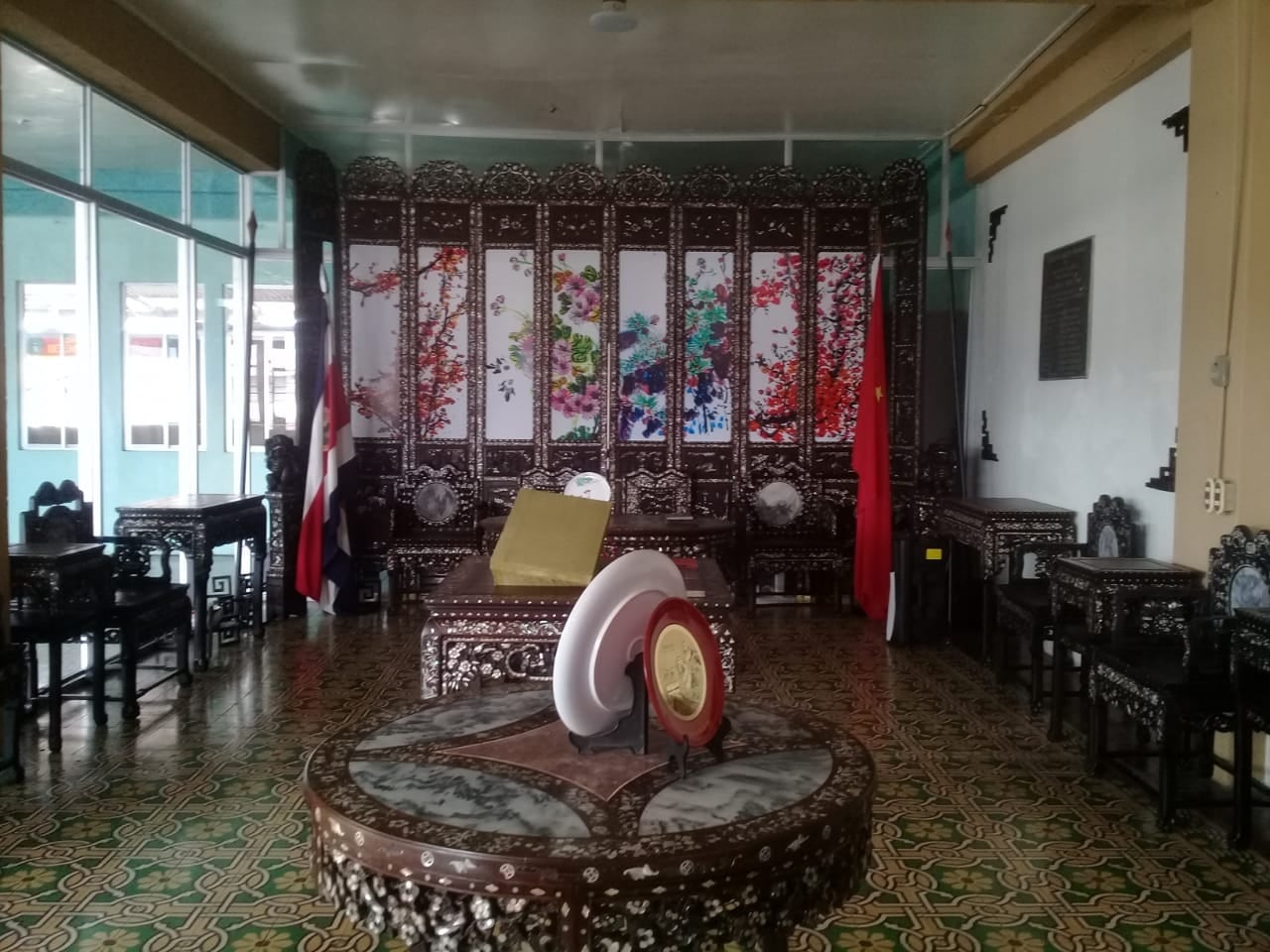 "En nuestra sede tenemos una exposición de reliquias llamada la Sala Imperial. Se compone de sillas, mesas, cristalería, ropa tradicional y hace poco se le hizo al mobiliario una serie de trabajos para restaurarlos. Estos muebles se dice que están disponibles únicamente en tres países del mundo: en Cuba, Malasia y en la costa pacífica de Costa Rica.