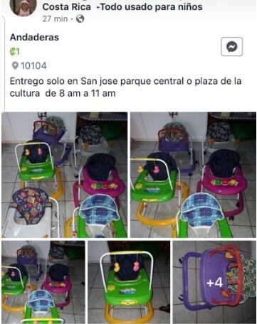 Salud difundió posteos de gente ofreciendo estos artículos en páginas de Facebook y aplicaciones como Mercado Libre. Son andaderas, principalmente, de segunda mano.
