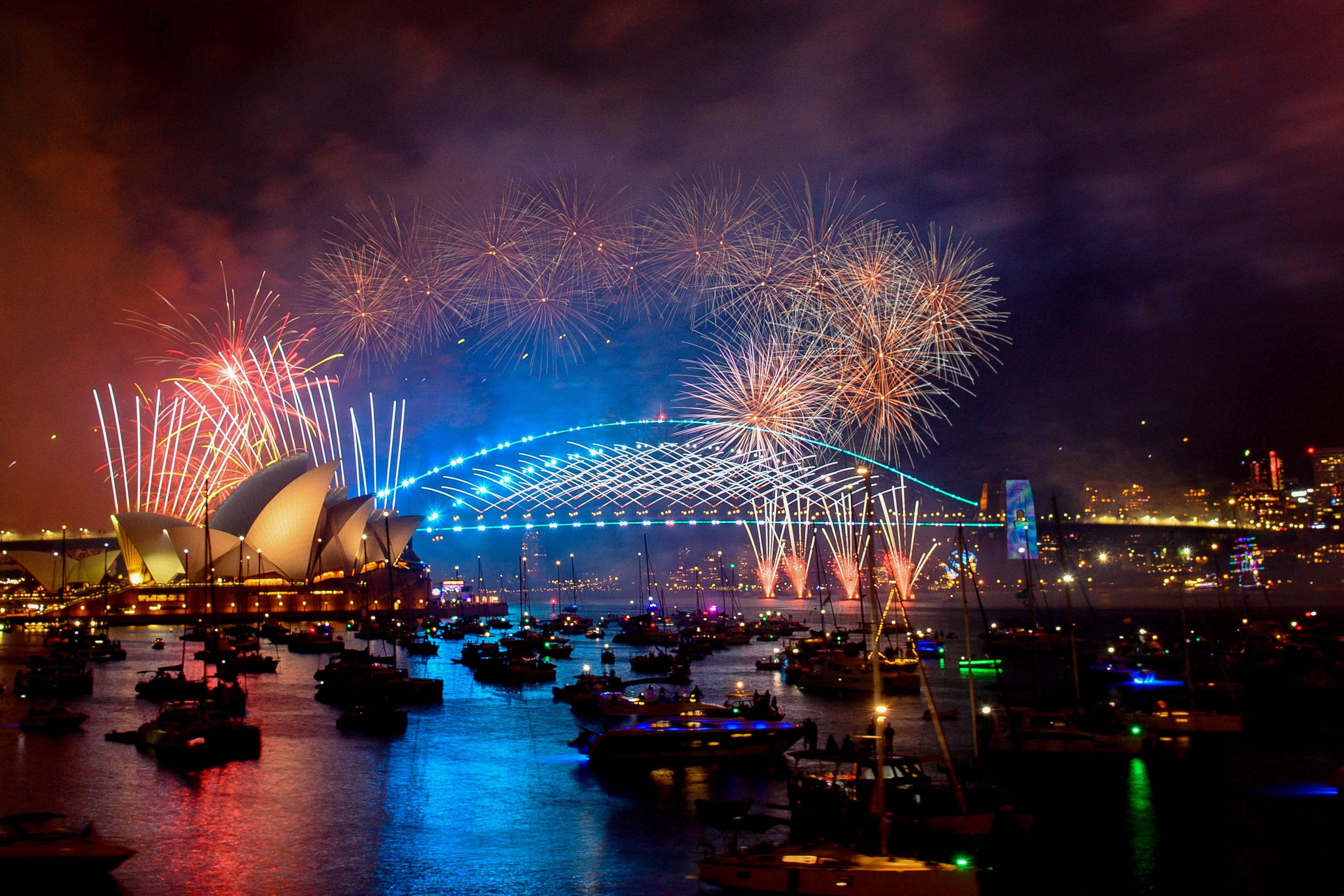 Incluso, antes del anochecer, decenas de miles de personas se reunieron en puntos estratégicos alrededor del reconocido Harbour Bridge de la ciudad, desafiando un clima inusualmente húmedo.