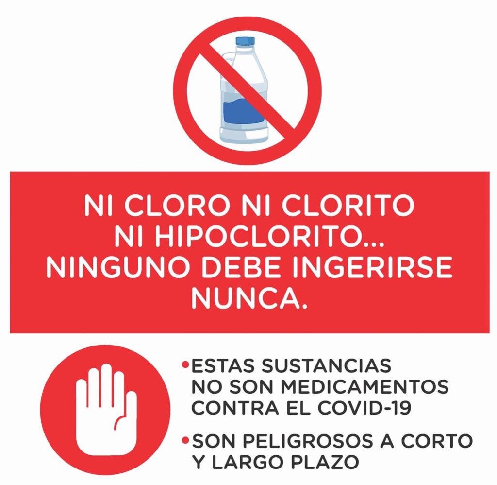 “No existe evidencia científica que respalde el uso de estas sustancias contra el coronavirus u otras enfermedades tal y como se promocionan a través de redes sociales, sitios web, publicidad engañosa u otros medios de comunicación. Por lo que su uso pone en grave riesgo a la salud de la población que lo consume o pretende hacerlo. El clorito de sodio y dióxido de cloro no han sido evaluados rigurosamente ni aprobados por ninguna agencia a nivel nacional o internacional, mediante ensayos clínicos para su utilización como medicamentos”, advirtió el ministerio.