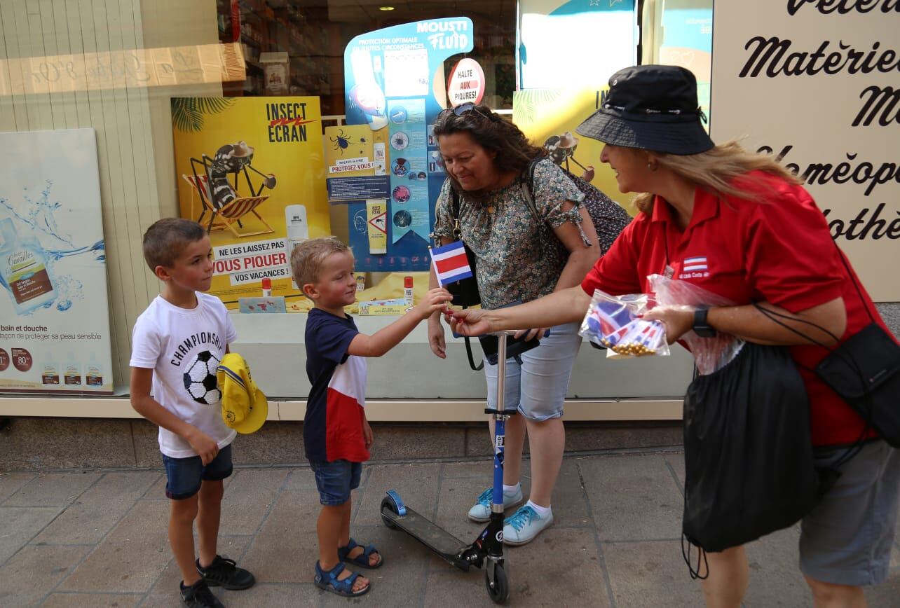 Con canciones como El Brinco del Sapo, Canto a mi Puntarenas, La Guaria Morada y Espíritu Guanacasteco, los franceses bailaron al ritmo típico nacional. Además se le regalaban banderitas de Costa Rica a quienes se acercaban.