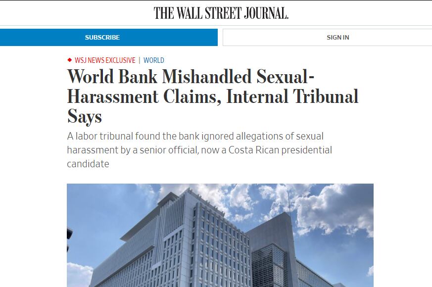 “El partido político que lidera Chaves ha tratado de hacer ver durante la campaña electoral que esas acusaciones de acoso sexual en su contra no tienen importancia, pero claro que la tienen, a nivel internacional el acoso sexual es sumamente relevante y, si llegara a ser presidente, los titulares de los medios internacionales recordarían estas acusaciones y la sanción que recibió en el Banco Mundial, por lo que Costa Rica llamaría la atención de forma negativa”.