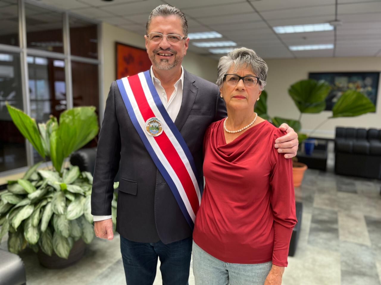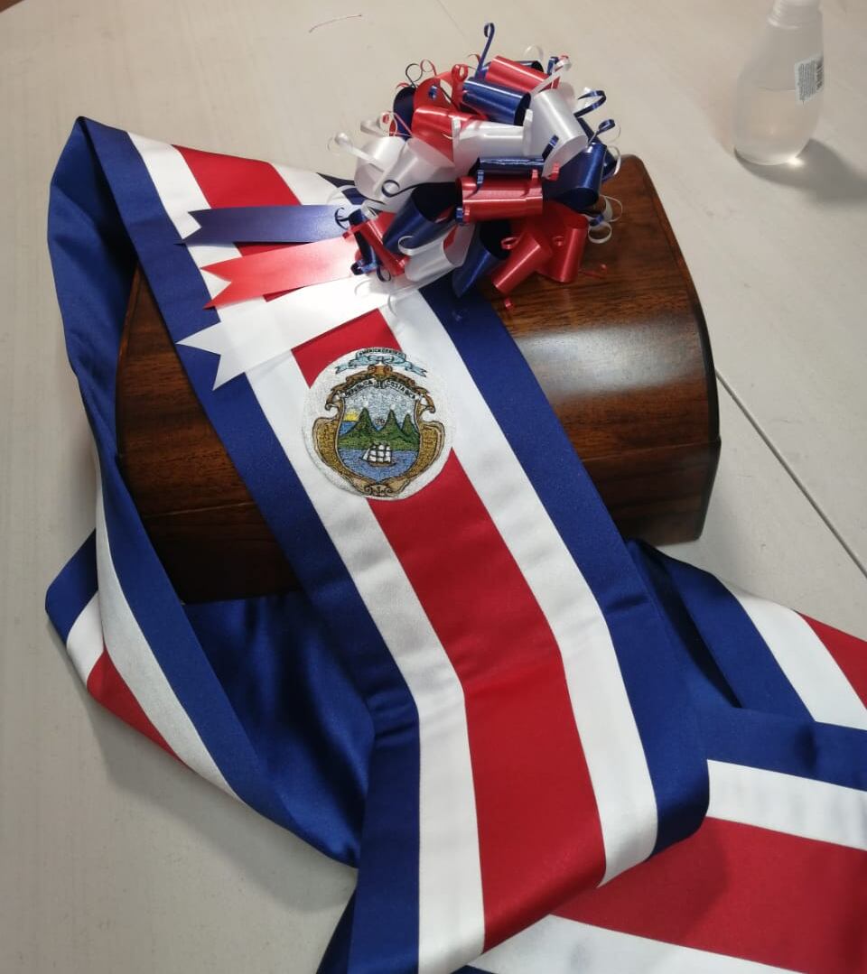 La banda presidencial que estrenará Rodrigo Chaves en el traspaso de poderes de este domingo fue hecha para Carlos Alvarado; sin embargo, por cosas de la vida el presidente saliente no la necesitó, pero el nuevo mandatario sí lo hará.