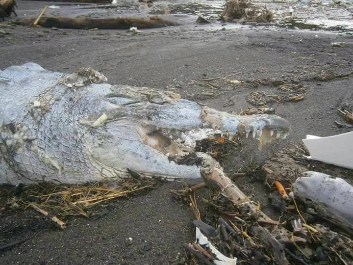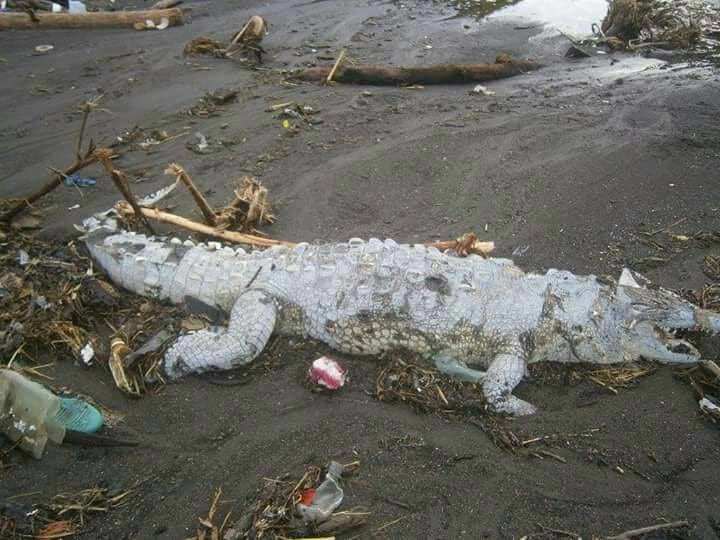El animalote palmó en el río Tárcoles; sin embargo, el cuerpo fue arrastrado hasta playa Bajamar en Puntarenas, donde unas personas lo encontraron tieso, rodeado de basura y dentro del hocico tenía más desechos.