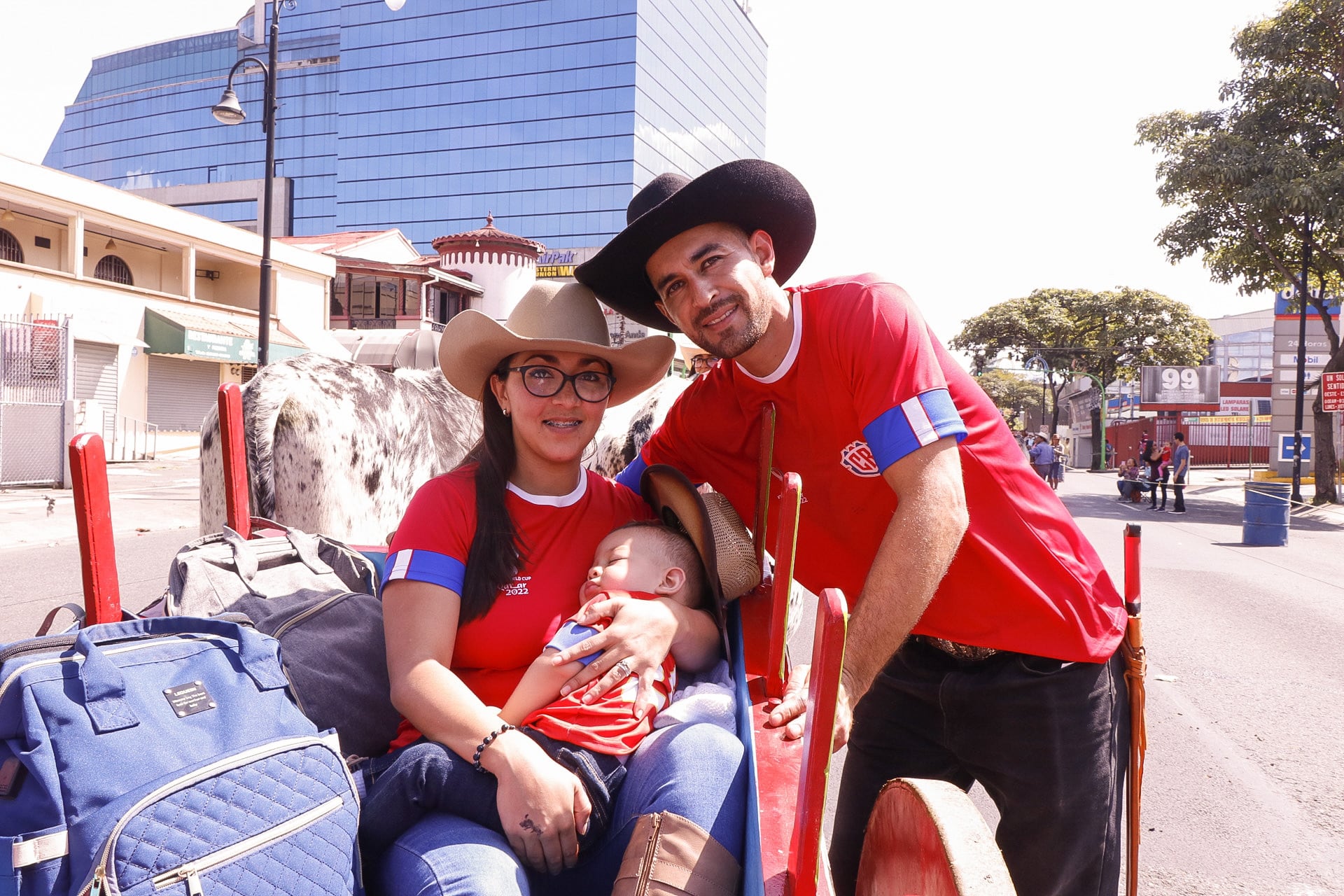 Con la seguridad y la fuerza de un boyero de pura cepa, nos dijo: “A mí me encantaría que España y Alemania empaten porque Costa Rica, estoy seguro, les saca el triunfo a los alemanes”. Después de ese comentario, junto a su esposa, Gabriela Cabezas y el hijo de ambos, Mateo Ramírez, quien tiene un año y cinco meses y ya es un enamorado de los bueyes.