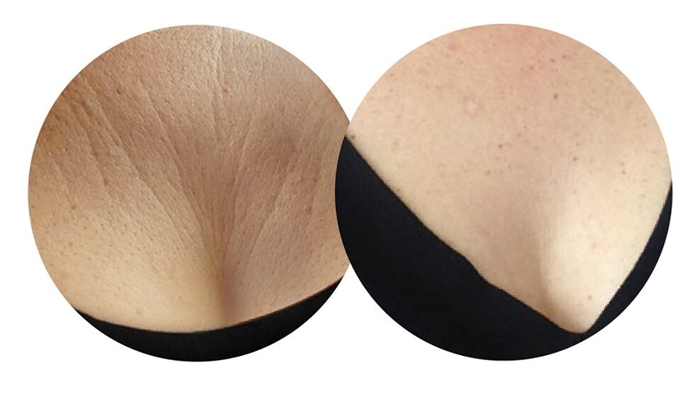Hay varios factores que influyen en la formación de arrugas en esa área del escote: el tener un poco de grasa en esa zona favorece que no se marquen tanto las arrugas; los cambios hormonales afectan mucho porque alteran las glándulas sebáceas y la elasticidad de la piel. El exponerse al sol sin protección y la gravedad.