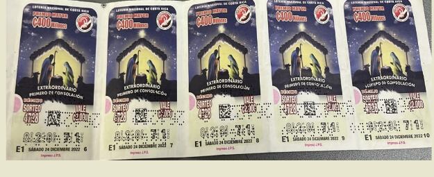 Una mujer de 32 años, vecina de Cartago, pegó cinco pedacitos del 71 con la serie 828, premio mayor del primer sorteo de consolación de la lotería navideña que se jugó este sábado 24 de diciembre.