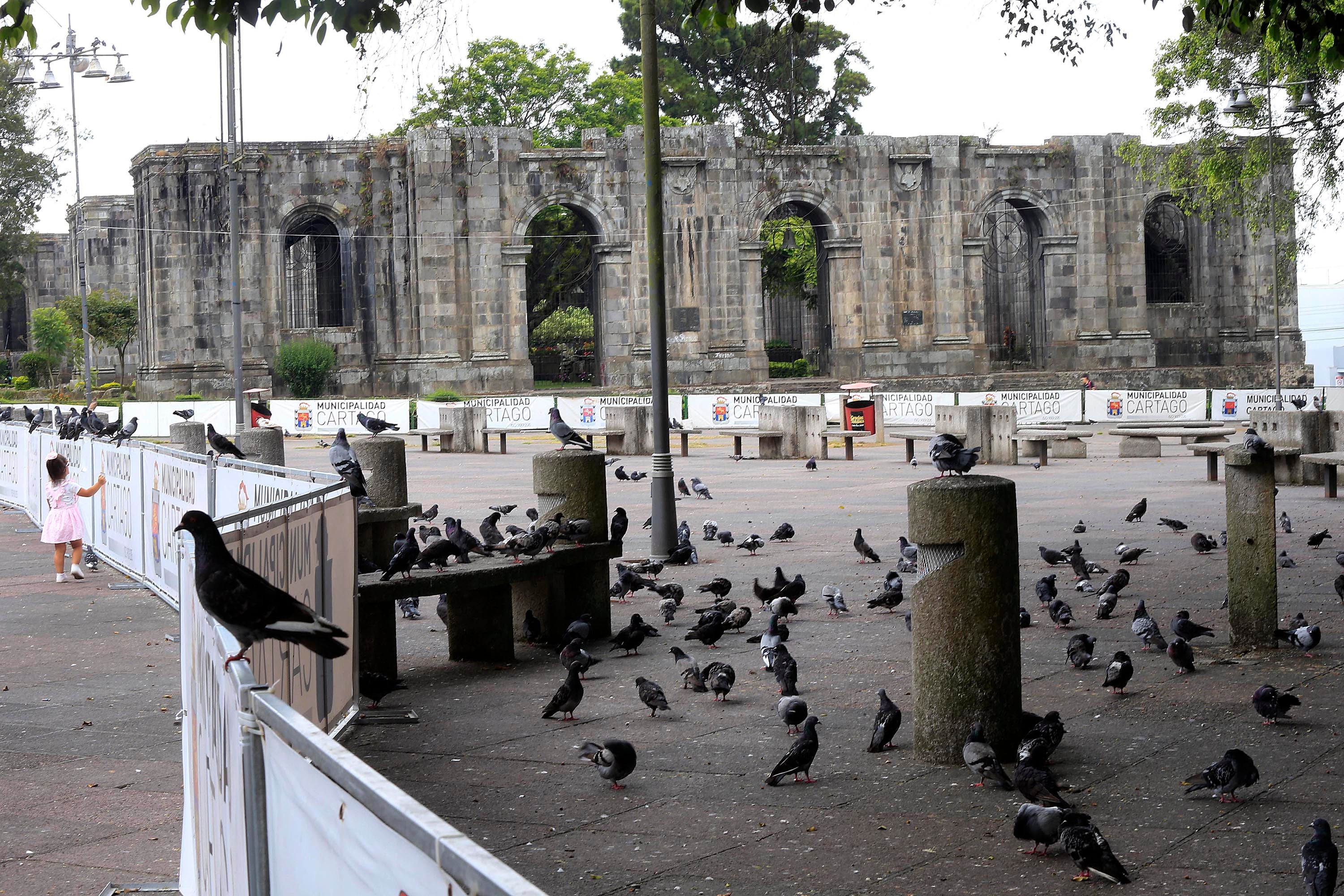 Calcula que solo en el sector de Las Ruinas de Santiago Apóstol, en el puritico centro de la VIeja Metrópoli, pueden haber entre 500 y 800 palomas, por eso, antes de visitarlas pasa por el mercado Central de Cartago a comprar dos kilos de maíz cascado para darles.