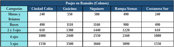 A partir del lunes 5 de setiembre se aplicará un ajuste extraordinario de tarifas, el cual rebajará el precio de todas las categorías de vehículos y en todos los peajes.